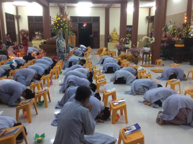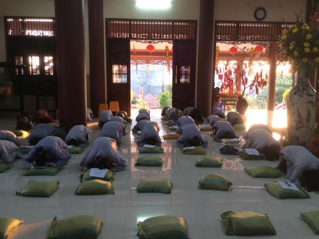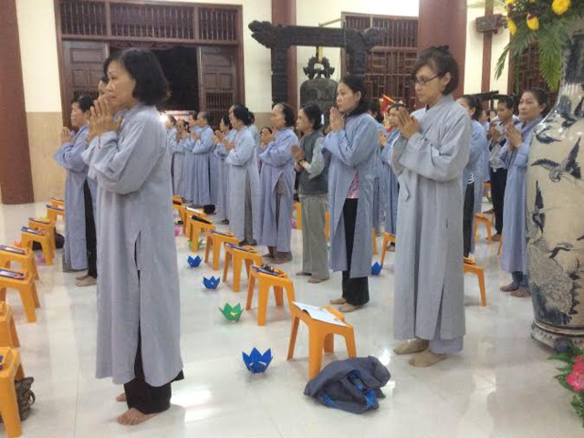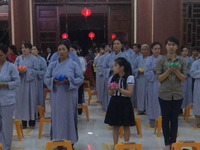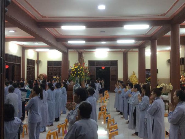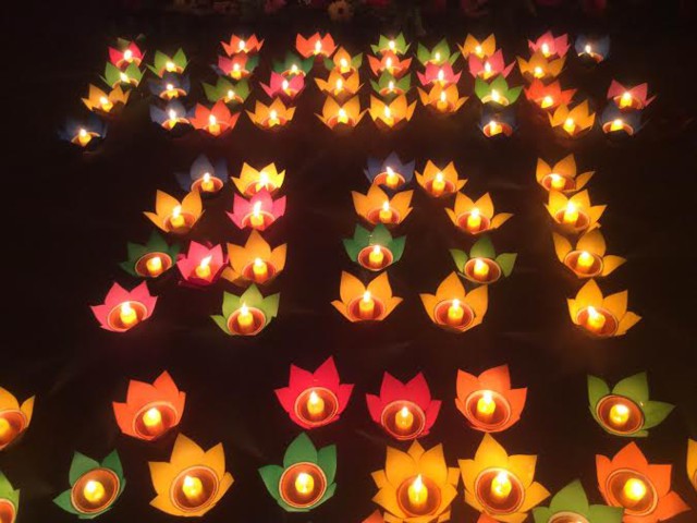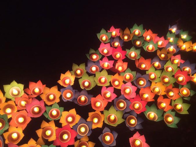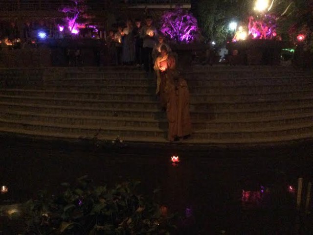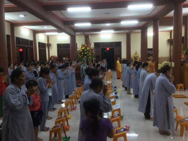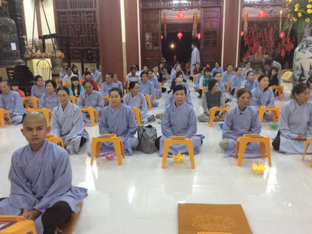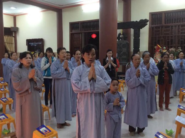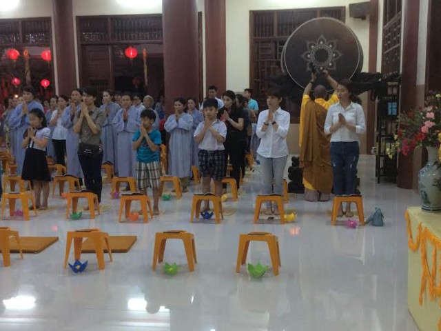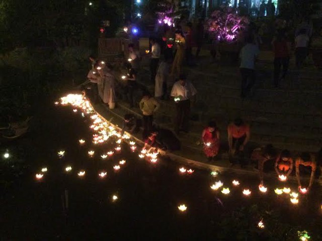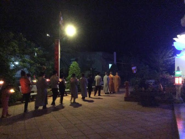 Buổi lễ cầu an chính thức bắt đầu vào lúc 18 giờ cùng ngày. Sau phần nghi thức tụng kinh cầu an đầu năm, toàn thể đạo tràng đã cùng nhau thắp lên ngọn lửa tâm linh trong đêm hoa đăng dưới ánh đèn nến lung linh huyên ảo. Thầy trụ trì đã hướng dẫn quý Phật tử học cách chào nhau, giữ tâm mình chánh niệm, an lành trong từng hơi thở, trong từng bước đi để đem lại năng lương hạnh phúc cho mọi người.