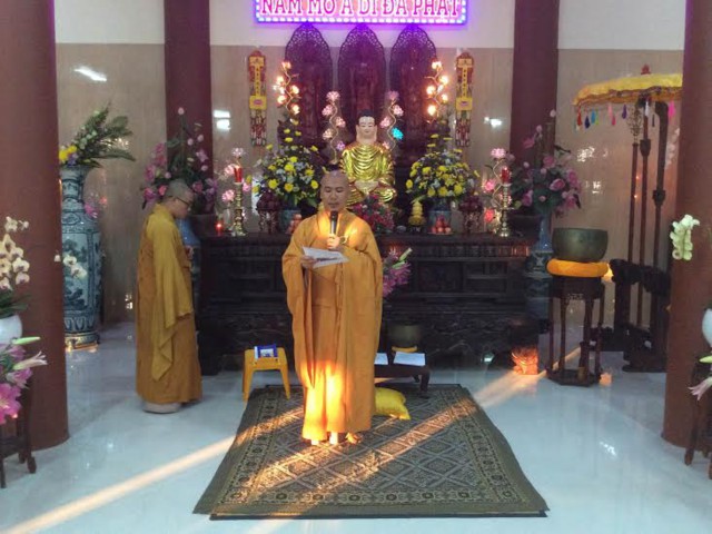 Tại buổi lễ, Đại Đức trụ trì Thích Nguyên Kính đã cùng chư Tăng trong chốn trụ xứ cử hành nghi lễ niêm hương, bạch Phật, cầu nguyện cho thế giới an lành, nhân sinh được ấm no hạnh phúc, chúng sanh biết yêu thương lẫn nhau trong tình đồng loại.