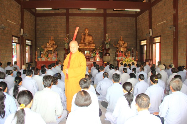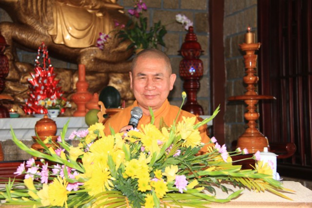 Buổi chiều, Thượng Tọa Thích Thông Huệ thuyết pháp chủ đề: “Phước đức và trí tuệ” khuyến khích Tăng Ni và người phật tử cần phát triển song hành phước đức và trí tuệ trong đời sống tu tập.