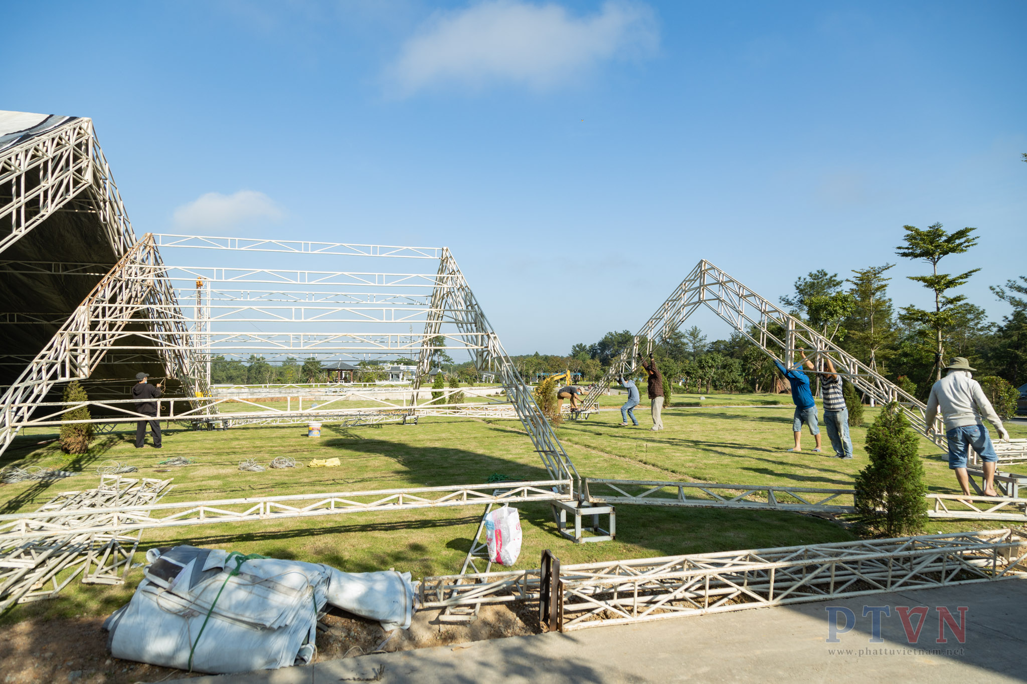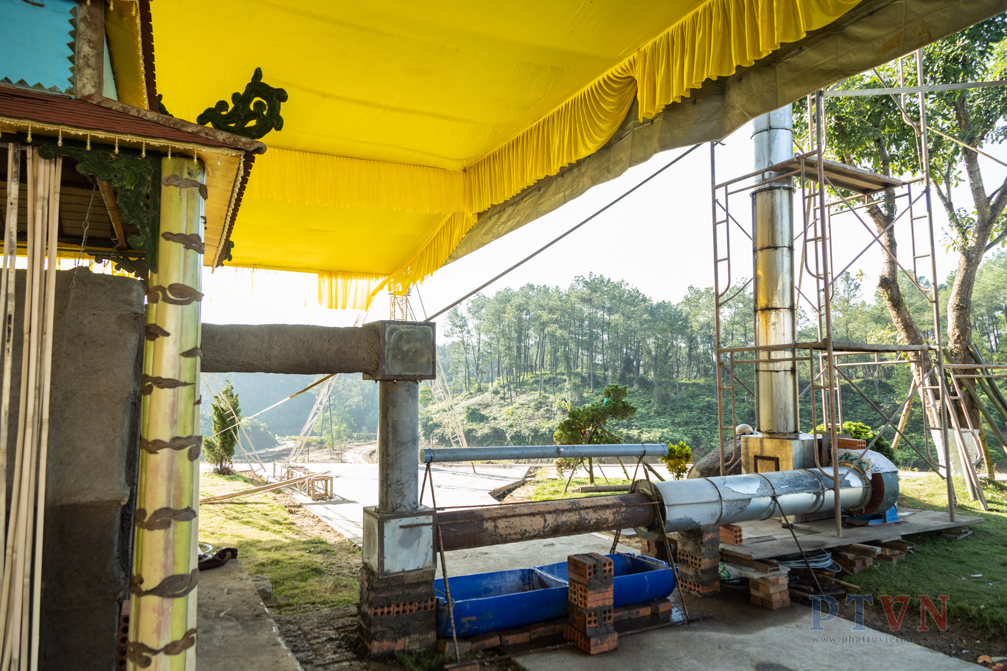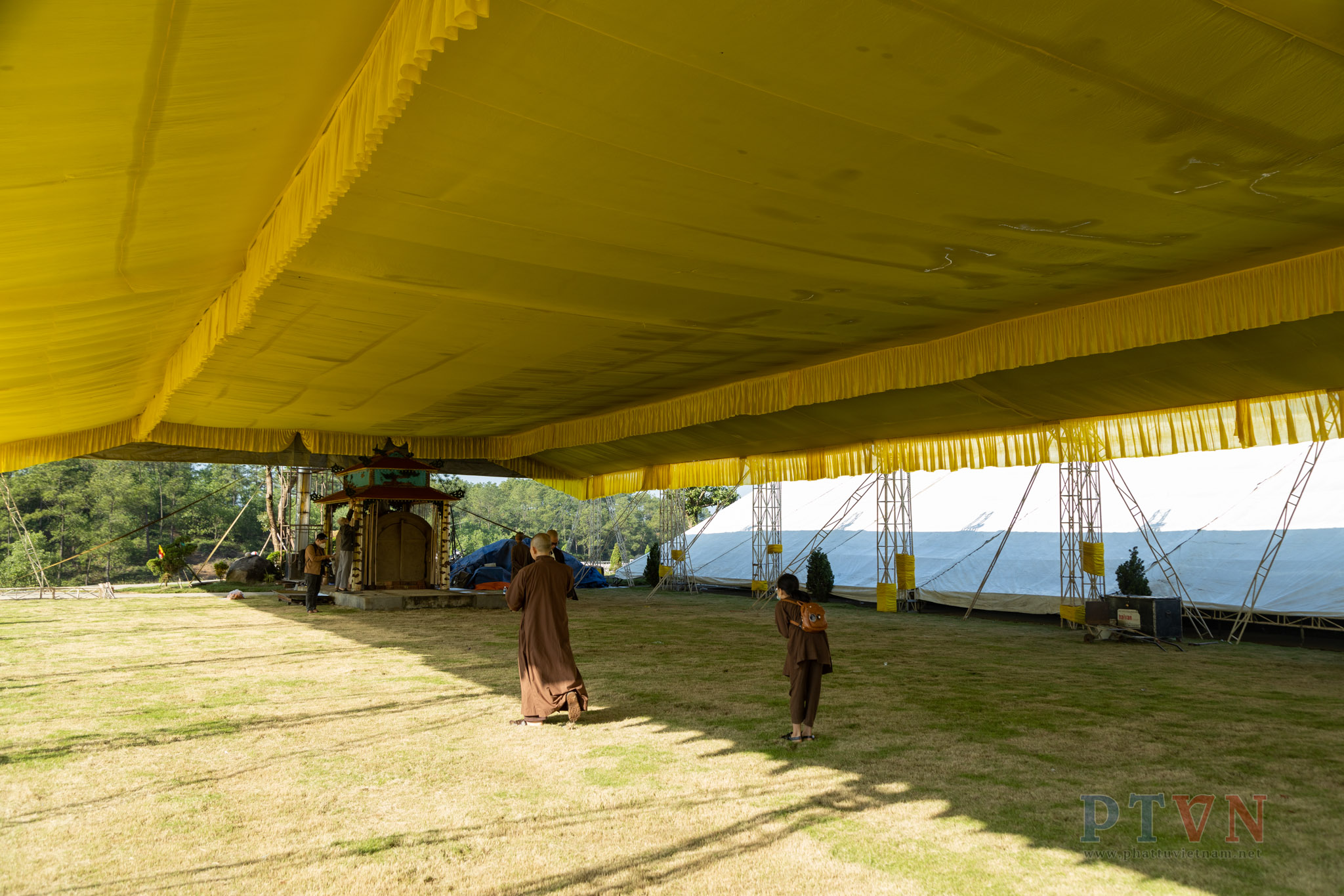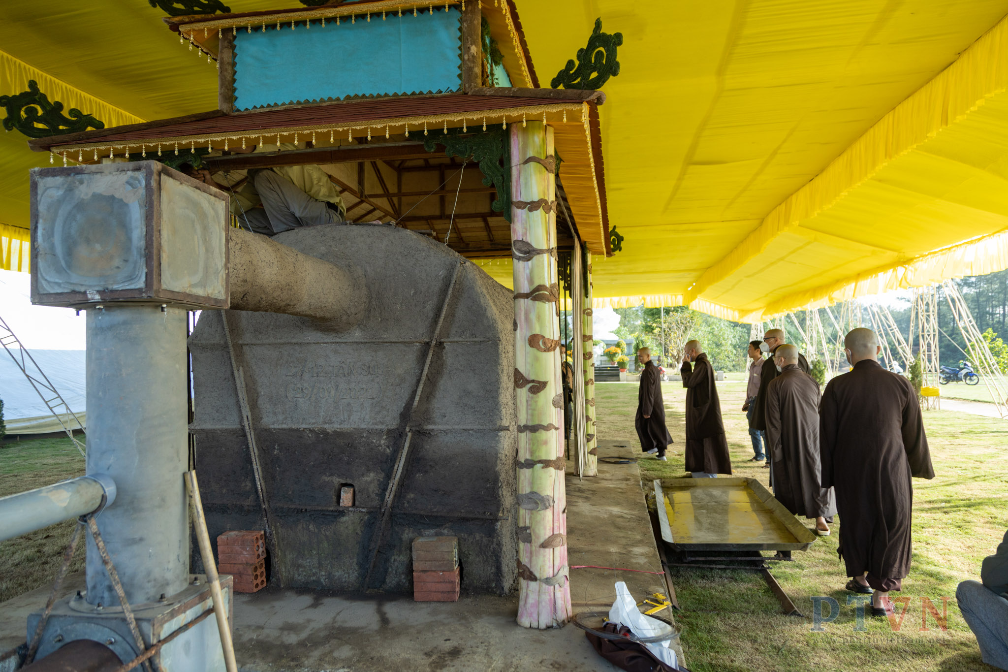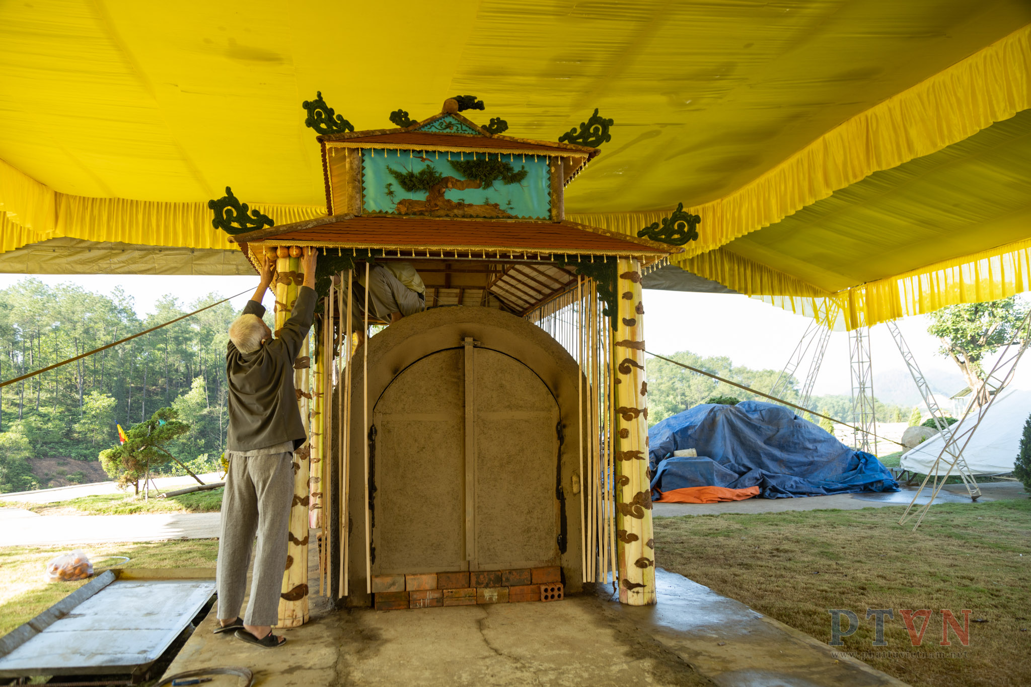 Ban Tổ chức Tang lễ, môn đồ pháp tử cùng các nghệ nhân đang ngày đêm chuẩn bị đài hoả táng và không gian tổ chức lễ Trà tỳ để đảm bảo trang nghiêm và phòng ngừa lây nhiễm dịch bệnh Covid-19.