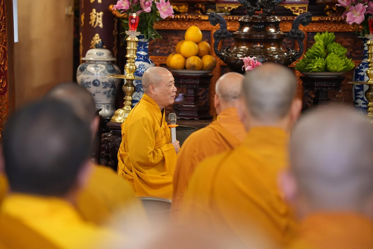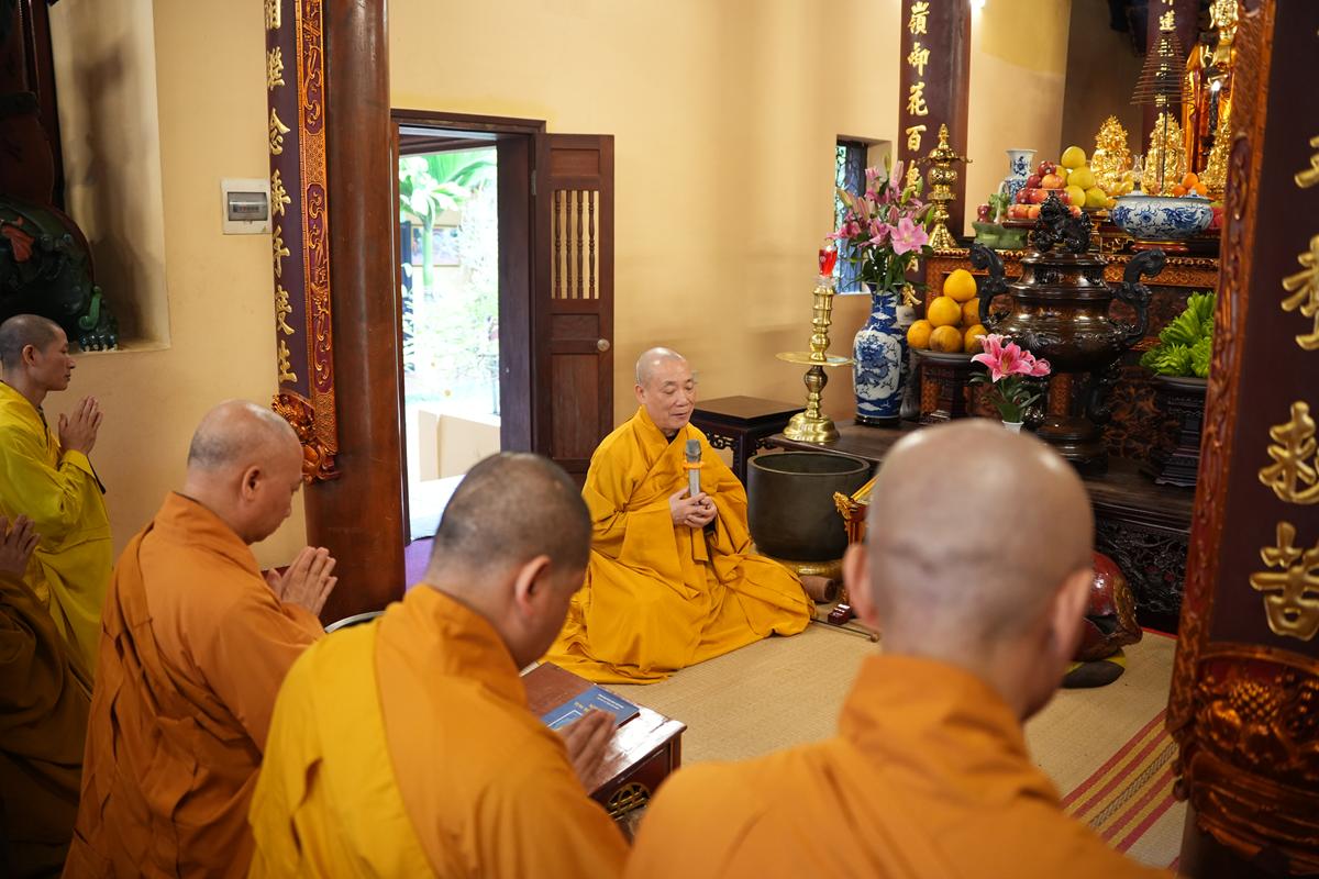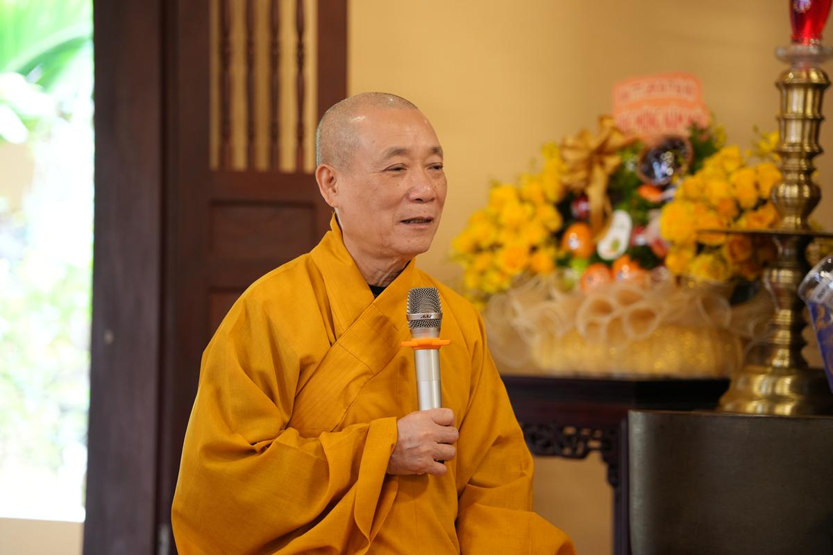 Sau khi thực hiện nghi thức niêm hương bạch Phật, lễ Tổ, Thượng tọa Thích Chiếu Tuệ – đại diện cho hàng pháp tử, pháp tôn – đã dâng lời tác bạch khánh tuế, bày tỏ lòng tôn kính và tri ân sâu sắc đối với Hòa thượng Ân sư. Những lời tác bạch mộc mạc mà thấm đượm đạo tình đã gợi nhắc công đức giáo dưỡng của bậc Thầy khả kính, người đã tận tụy dìu dắt nhiều thế hệ Tăng Ni trên con đường tu học, hoằng dương chính pháp, lợi lạc quần sinh.
