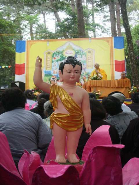 Sau ba hồi chuông trống bát nhã hùng tráng vang dậy núi rừng Tam Đảo, Đại chúng niệm Phật hồng danh, rước lễ đản sinh.