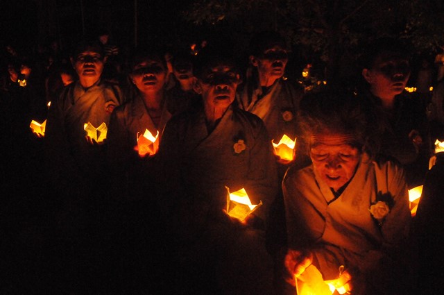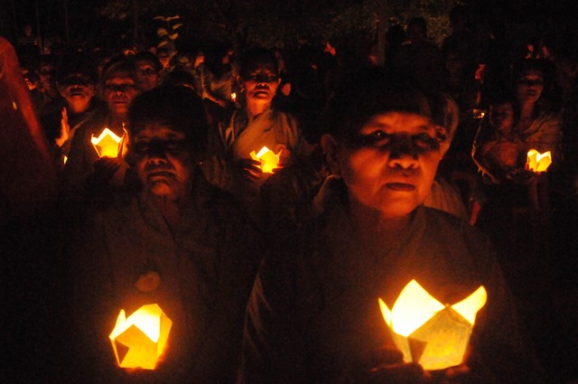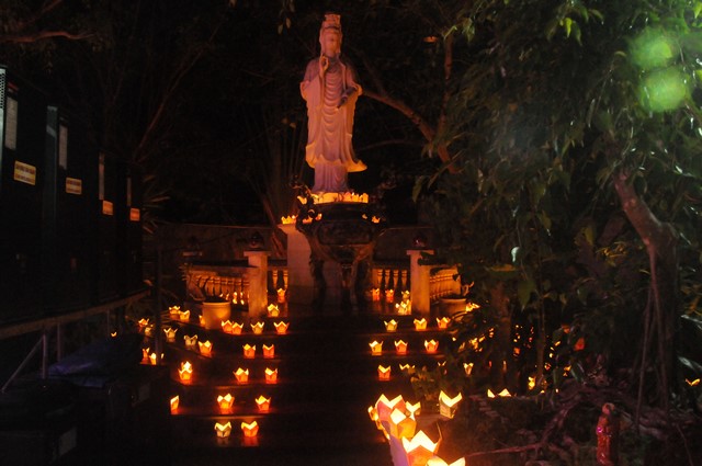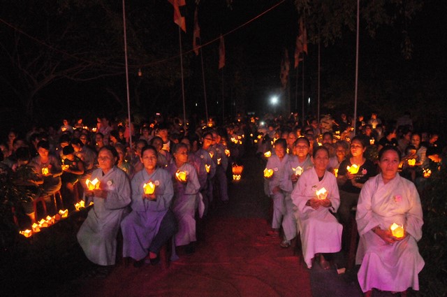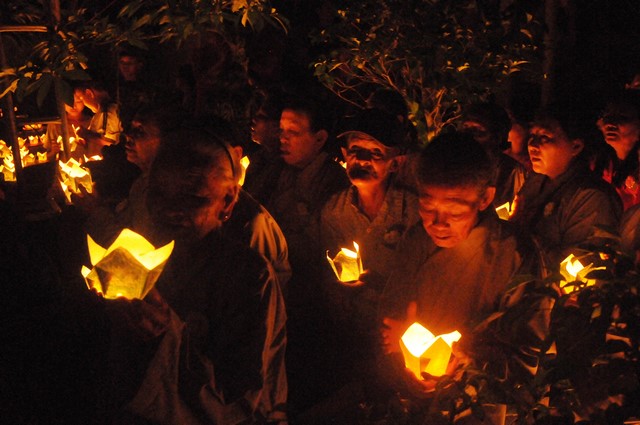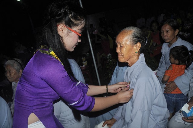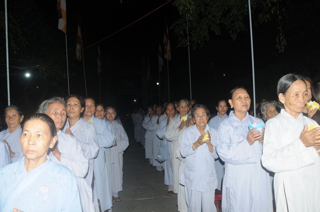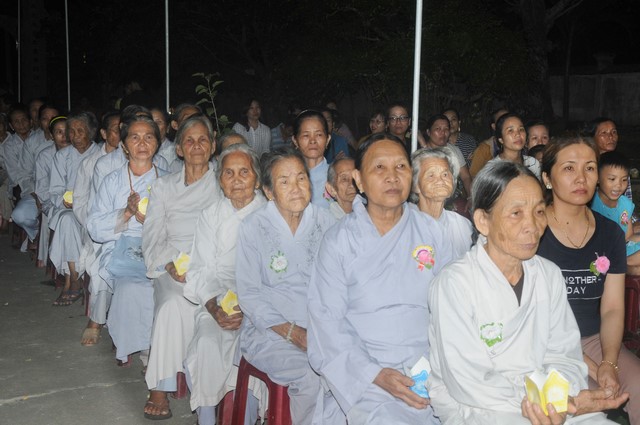 Nghi thức đốt nến truyền đăng cũng được diễn ra trong không khí thiêng liêng, xúc động dưới cơn mưa phùn chuyển mùa, tạo nên không gian lắng đọng. Dưới ánh nến lung linh, những người con Phật cùng hướng về tấm gương hiếu hạnh của Tôn giả Mục Kiền Liên, hoài niệm về những vất vả, gian lao mà hai đấng sinh thành đã oằn lưng gánh nặng để chúng ta có cuộc sống như ngày hôm nay, một lần phủ phục ăn năn những lỗi lầm đã gây thương tích trong tim mẹ và những vết hằn sâu trong đôi mắt mẹ.