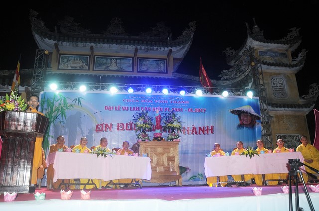 Ban đạo từ tại buổi lễ, ĐĐ.Thích Hạnh Thông nêu cao ý nghĩa chữ hiếu trong đạo Phật, tán thán công đức của Đại đức trụ trì cũng như quý đạo hữu chùa Hòa Vinh Thạnh đã thực hiện chương trình rất ý nghĩa nhân mùa Vu lan báo hiếu. Đại đức mong muốn quý Phật tử luôn ghi nhớ đến công ơn sinh thành dưỡng dục của cha mẹ mà tạo ra nhiều công đức lành, biết đi chùa tụng kinh, biết tin sâu Tam Bảo, biết phóng sinh làm từ thiện rồi hồi hướng công đức lành đó cho cha mẹ hiện tiền của mình được tăng long phúc thọ, cho cha mẹ quá vãng được siêu sinh Phật quốc.