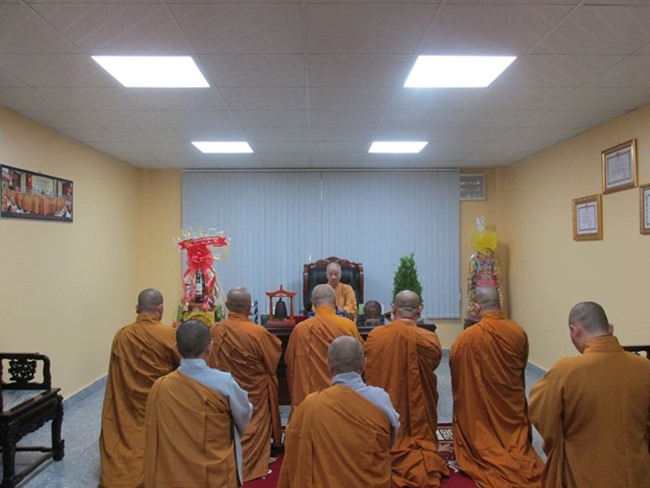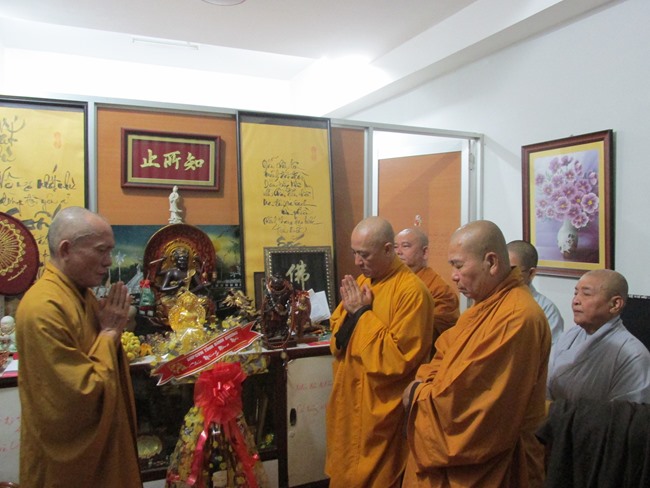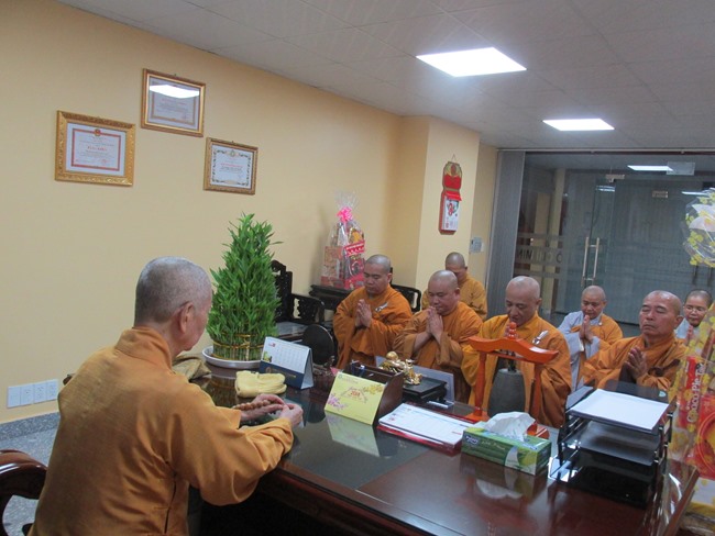 Rời chùa Minh Đạo, BTS GHPGVN tỉnh Bình Dương đến thăm và chúc tết, HT. Thích Trí Quảng- Phó Pháp Chủ Hội Đồng Chứng minh (tại chùa Việt Nam Quốc Tự); HT. Thích Thiện Pháp- Phó Chủ tịch Thường trực HĐTS, Trưởng Ban Tăng Sự TƯ; TT. Thích Thiện Thống- Phó Chủ tịch HĐTS; HT. Thích Huệ Trí- Trưởng Ban Pháp Chế Trung ương tại Văn phòng 2 TWGH.