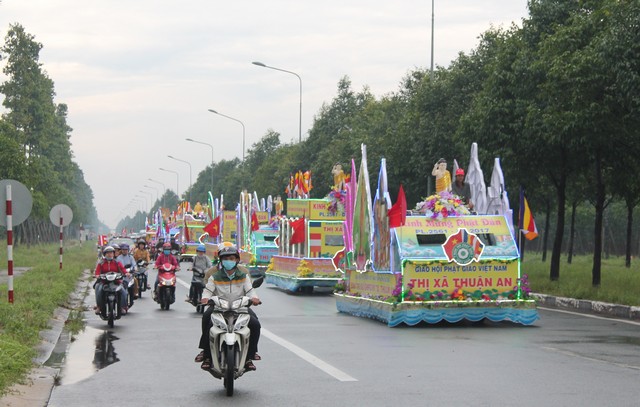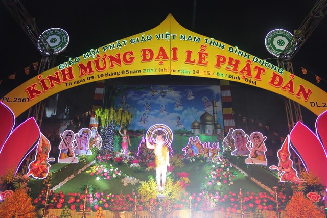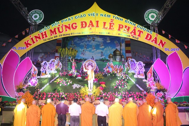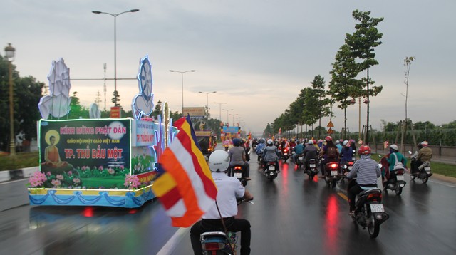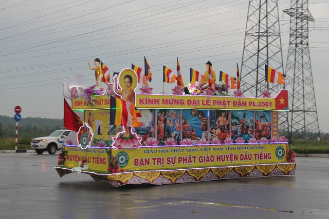 Vào chiều ngày 09/5/ 2017 (14/4/ Đinh Dậu), hàng ngàn Phật tử và hơn 20 chiếc xe hoa được thiết kế với nhiều hình ảnh sinh động, gắn liền với sự kiện của ngày Đản sanh,  do  Ban Trị sự  Phật giáo tỉnh, Ban Trị sự  09 huyện thị thành, các ban trực thuộc Phật giáo tỉnh, và các cơ sở tụ viện trong địa bàn tỉnh tập trung về chùa Hội An, thành phố mới Bình Dương, cùng với sự hỗ trợ của 25 xe mô tô dẫn đường và khoảng 30 ô tô tháp tùng đoàn diễu hành từ 4- 15 chỗ, diễu hành về Trung tâm văn hóa Phật giáo tỉnh- Tượng Phật nhập Niết bàn chùa Hội Khánh, phường Phú Cường, thành phố Thủ Dầu Một, tỉnh Bình Dương.