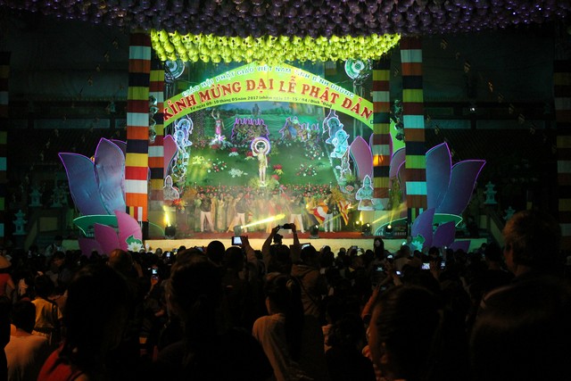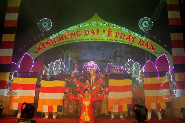 Sau phần nghi thức cung rước kiệu Đản sanh, 19 giờ đêm văn nghệ đặc sắc với sự góp mặt của các văn nghệ sĩ  nổi tiếng tại Thành phố Hồ Chí Minh và đoàn Ca múa nhạc dân tộc tỉnh Bình Dương, với nội dung ý nghĩa  mừng ngày đản sanh, ca ngợi quê hương đất nước, đã tạo nên một không khí vui tươi, hân hoan của người con Phật nhân ngày Đại lễ thiêng liêng này.
