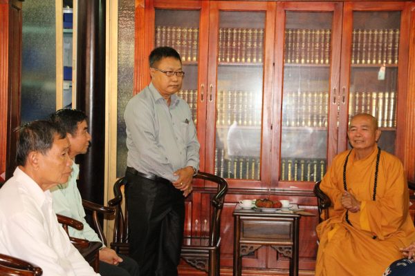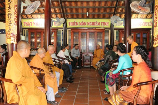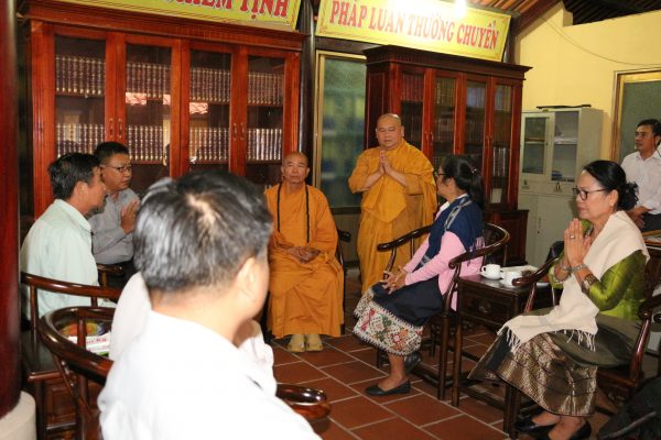 Đoàn UBMTTQ xây dựng Lào, tỉnh Champasak được chư Tôn đức Thường trực BTS Phật giáo tỉnh mời vào khách đường để có buổi nói chuyện và chia sẻ nhân chuyến sang thăm và làm việc với Việt Nam tại tỉnh Bình Dương.