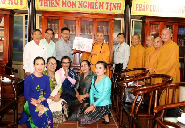 Dịp này, Hòa thượng đã thay mặt Phật giáo Bình Dương gửi đến Đoàn UBMTTQ xây dựng Lào, tỉnh Champasak món quà lưu niệm nhân chuyến viếng thăm Việt Nam tại Bình Dương. Đồng thời, Hòa thượng cũng gửi lời kính chúc Đoàn UBMTTQ xây dựng Lào, tỉnh Champasak luôn thành tựu các công tác hoạt động của mình, nguyện cầu cho đất nước Lào được yên bình, phát triển thịnh vượng.