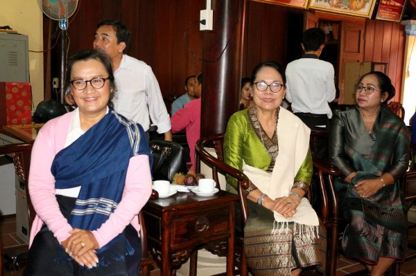Về phía đoàn Lào có: Ông Phuang Phet Sonthalath, Ủy viên Mặt trận Trung ương, Phó Chủ tịch Mặt trận Lào xây dựng đất nước tỉnh Champasak; bà PhouThon Souphanthong, Phó Chủ tịch Mặt trận Lào xây dựng đất nước tỉnh Champasak cùng các vị trong đoàn.
