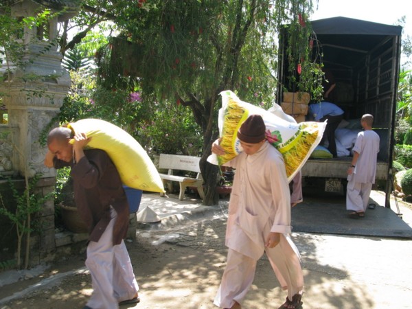 Trong đó Ban Từ thiện Vạn Hạnh góp 50 triệu, chùa Linh Phước, Linh ẩn 60 triệu đồng, chùa Thiền Lâm 10 triệu, TT Thích Minh Liên chùa Quan Âm Khe sanh vận động cô Tư – nhóm từ thiện Bảo Hòa TP Hồ Chí Minh 3 tấn gạo, nhóm Từ Thiện Cát Tường thành phố Đà Lạt và huyện Đức Trọng 100 triệu, chùa Linh Bảo 100 kg gạo, tịnh xá Ngọc Tài 100 kg gạo v.v…