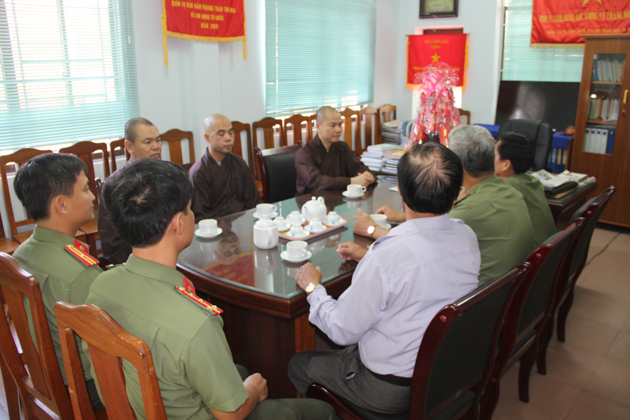 Đại tá Phạm Nhi Tùng thay mặt phòng ANXH cảm ơn đoàn và ghi nhận sự phối hợp tích cực của BTS GHPGVN Tp Đà Nẵng trong những năm qua trong các công tác vận động, tuyên truyền bà con Phật tử thực hiện chính sách pháp luật của nhà nước, các công tác an sinh xã hội.