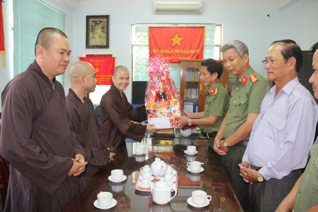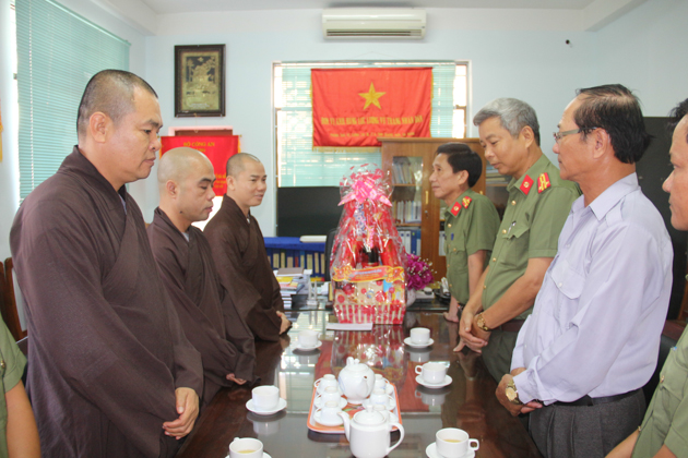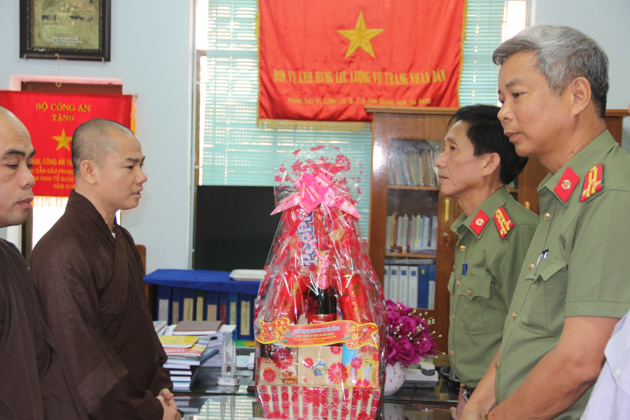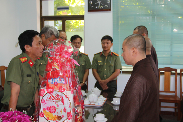 Thay mặt BTS GHPGVN Tp Đà Nẵng, ĐĐ. Thích Thông Đạo đã tặng quà và chúc mừng cán bộ chiến sĩ Công an phòng ANXH nhân dịp kỷ niệm 70 năm lực lượng An ninh nhân dân Việt Nam. Đại đức cũng đã cảm ơn sự hỗ trợ tích cực của Phòng ANXH đối với Phật giáo Đà Nẵng trong nhiều năm qua.