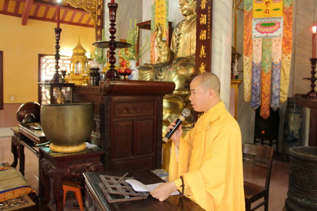 ĐĐ. Thích Huệ Chấn – UV kiểm soát BTS GHPGVN Tp Đà Nẵng đã thay mặt các hành giả an cư dâng lời phát nguyện, quyết tâm tu học, nỗ lực tu tập thiền định, trau dồi giới, định, tuệ, cùng nhau chung sống hòa hợp, thanh tịnh, thực hành sám hối, thúc liễm thân tâm.