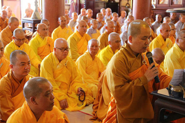 Sau lời phát biểu khai mạc của HT. Thích Chí Mãn, ĐĐ. Thích Thông Đạo – UV HĐTS GHPGVN, Phó ban kiêm Chánh thư ký BTS GHPGVN Tp Đà Nẵng đã đọc báo cáo số lượng hành giả đăng ký an cư. Năm nay, Chư Tăng Ni trên địa bàn Tp Đà Nẵng đăng ký an cư tại trường hạ Phổ Đà (Chư Tăng), trường hạ Bảo Quang và Quang Minh (Chư Ni) và các điểm an cư tập trung tại các quận huyện có 302 Chư Tăng và 178 Chư Ni.
