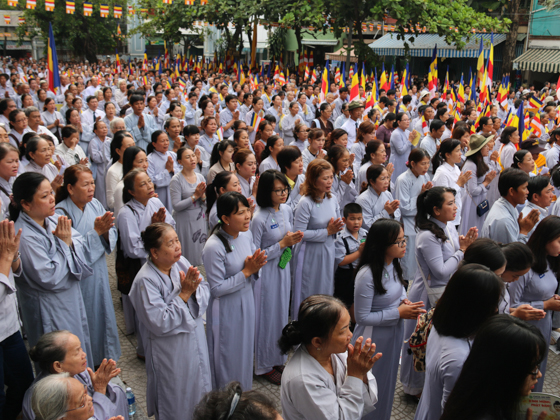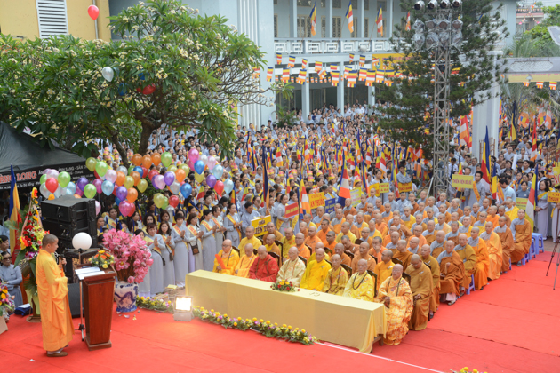 Sau phần nghi lễ niệm Phật, chào Quốc kỳ, Đạo kỳ, dâng hoa cúng dường, thả bong bóng và bồ câu cầu nguyện hòa bình, HT. Thích Chí Mãn đã tuyên đọc bức Thông điệp Phật đản quan trọng và tràn đầy đạo tình của Đức Pháp chủ GHPGVN – Trưởng lão HT. Thích Phổ Tuệ. Tiếp sau đó, ĐĐ. Thích Thông Đạo – UV HĐTS GHPGVN, Phó ban kiêm Chánh thư ký BTS GHPGVN Tp Đà Nẵng đã đãi lao HT. Thích Từ Tánh tuyên đọc Diễn văn Đại lễ Phật đản của Hòa thượng Chủ tịch HĐTS Thích Thiện Nhơn.