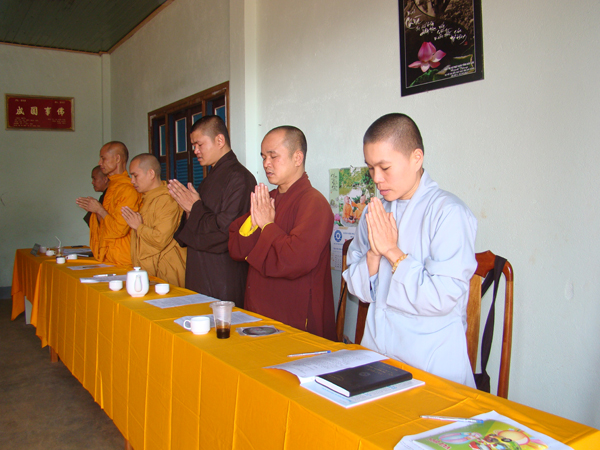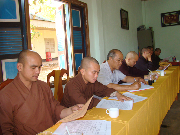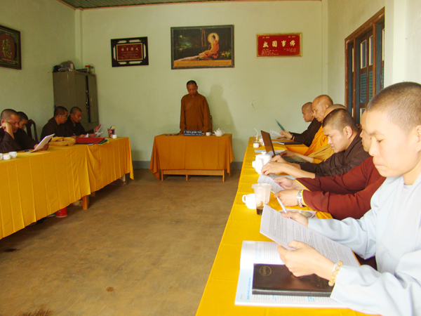 Buổi họp dưới sự chủ trì của TT. Thích Quảng Tuấn, UV HĐTS, Trưởng BTS GHPGVN tỉnh và ĐĐ. Thích Quảng Hiền, UV HĐTS, Phó Trưởng ban Thường trực BTS GHPGVN tỉnh Đăk Nông.