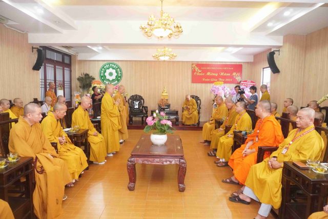 Hòa thượng cũng chỉ dạy thêm: Mỗi tỉnh nên tổ chức những khóa học bồi dưỡng về luật pháp thế gian, phổ biến Hiến chương, Nội quy của TƯ GHPGVN đến với Tăng Ni trên toàn tỉnh. Sau cùng, Hòa thượng gửi lời chúc năm mới xuân Giáp Thìn đến chư Tôn đức Ban Trị sự, một mùa xuân An Lành và nhiều niềm hỷ lạc.