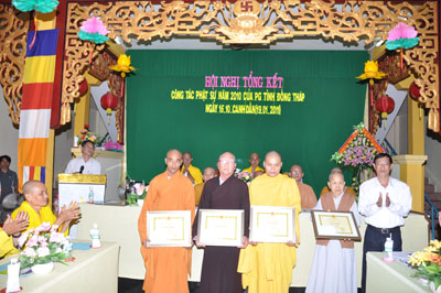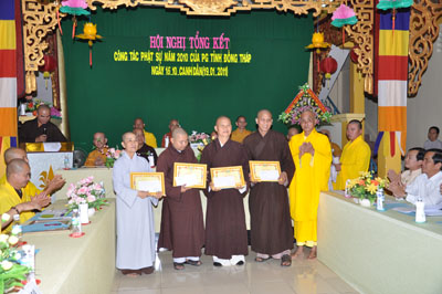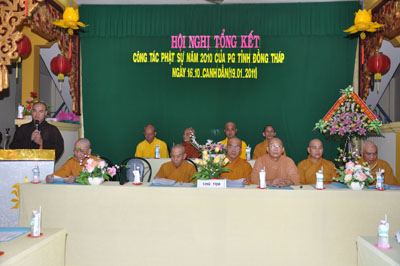 “Ban Trị sự Phật giáo tỉnh Đồng Tháp đã đạt được nhiều thành quả to lớn trọng năm 2010. Nguyên nhân thành tựu các Phật sự có thể nhìn thấy qua các mặt như sau: Vai trò của Giáo hội Phật giáo Việt Nam được khẳng định vững chắc trong lòng Tăng Ni, Phật tử Việt Nam trong và ngài nước; các hệ phái Phật giáo đều tích cực tham gia các hoạt động Phật sự; phát huy cao độ tinh thần đoàn kết hòa hợp; mọi Phật sự được triển khai trên tinh thần tập trung dân chủ; quản lý và điều hành công tác Phật sự theo hướng quyền lực thuộc về tập thể, cá nhân phụ trách; tất cả thành viên Ban Trị sự, Tăng Ni và Phật tử đều tuân thủ các quy định của Hiến chương Giáo hội Phật giáo Việt Nam, pháp luật Nhà nước”.