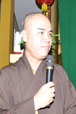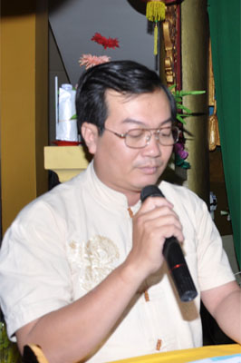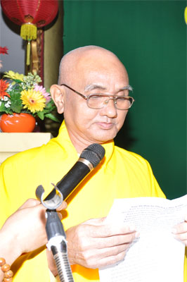 Đại đức Thích Tỉnh Triệt – Chánh Thư ký Ban Trị sự trình bày dự thảo báo cáo Tổng kết công tác Phật sự năm 2010.