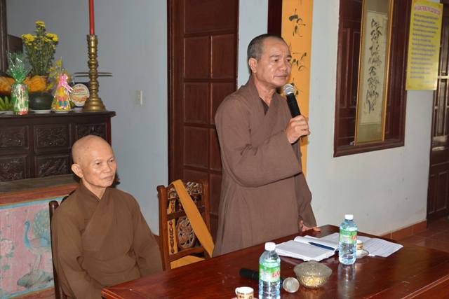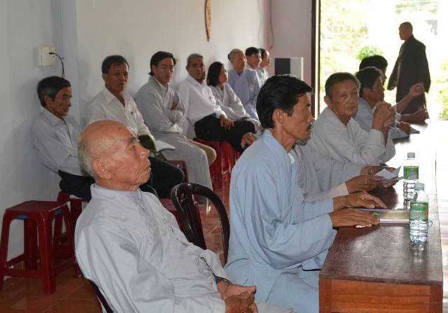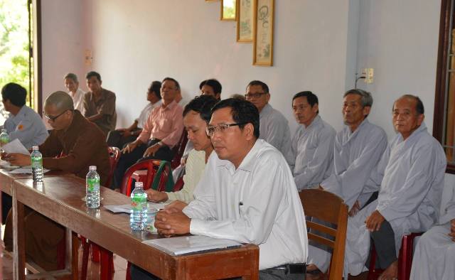 Buổi họp với sự chứng minh và tham dự của chư tôn đức Tăng Ni trong BTS PG huyện, quý phật tử đại diện ban hộ tự, ban hộ trì tam bảo các cơ sở cùng đại diện lãnh đạo chính quyền địa phương.