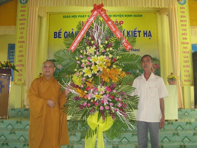 Quang lâm chứng minh và tham dự có HT Thích Liêm Chính – Ủy viên Ban Trị Sự, Phó ban Hoằng Pháp GHPGVN tỉnh Đồng Nai, TT Thích Chơn Trí, Phó Ban Pháp chế GHPGVN Đồng Nai, TT Thích Minh Dũng – Chứng Minh Ban Trị sự, PG h. Định Quán, , TT Thích Quảng Trí – cố vấn Ban Trị Sự – PG h. Định Quán. Ông Phạm Quang Đạt- Phó phòng Nội Vụ, Trung tá Nguyễn Xuân An, Đội trưởng Đội An Ninh Công An H. Định Quán đến dự và chúc mửng.