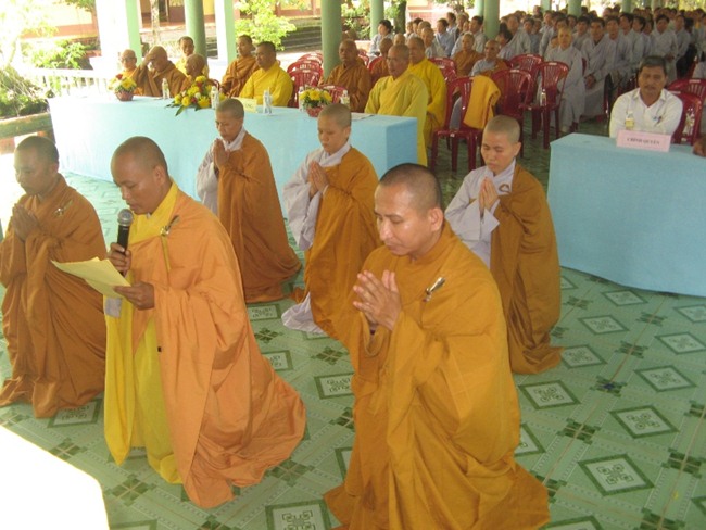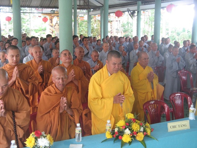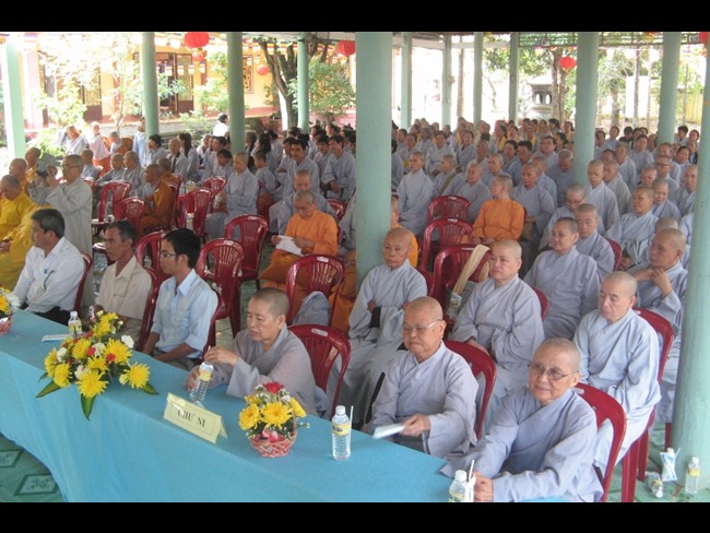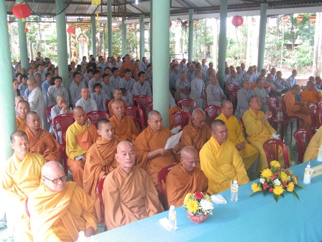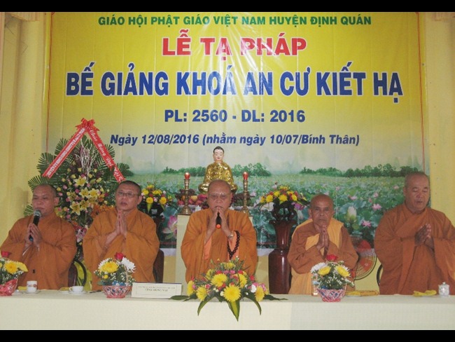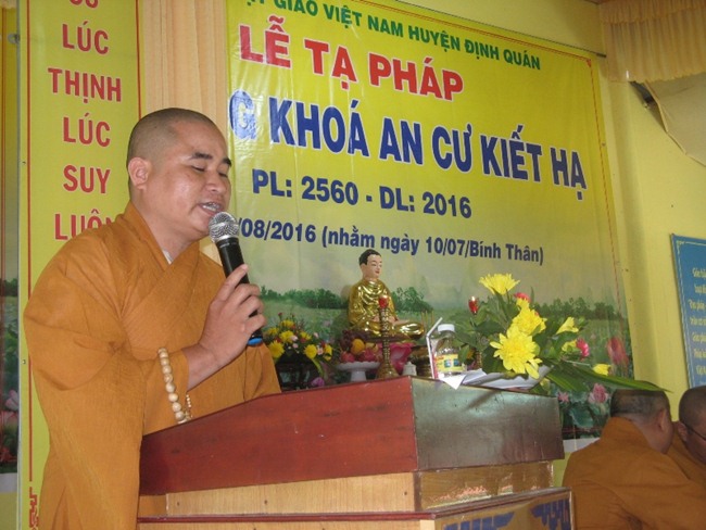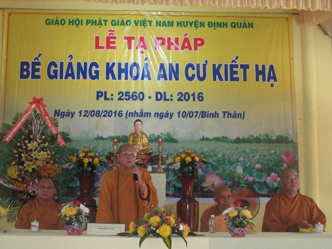 ĐĐ Thích Nhuận Đức– Phó Ban Trị sự PG H. Định Quán báo cáo tổng kết ba tháng an cư kiết hạ, Theo đó, Ban tổ chức khóa An cư có 21 thành viên do TT Thích Đồng Ngạn làm trưởng ban, lập hai ban chức sự, hai trường hạ tại Chùa Nam Sơn – xã Phú Túc dành cho Chư Tăng và tại Chùa Pháp Hoa, xã La Ngà dành cho Chư Ni.