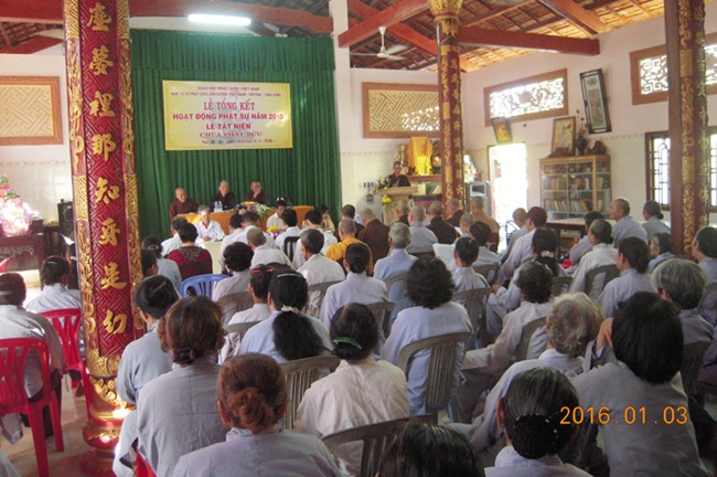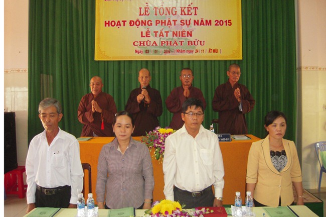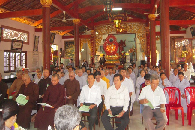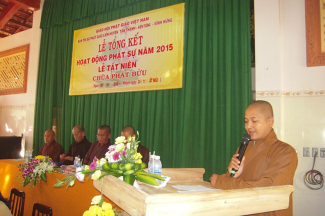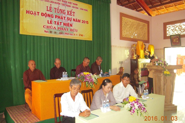 Tham dự Hội nghị Tổng kết với sự chứng minh của Thượng Tọa Thích Minh Thọ- Phó thường trực BTS GHPGVN tỉnh Long An; HT. Thích Quảng Ý- Trưởng Ban trị sự GHPGVN liên huyện Tân Thạnh- TX Kiến Tường- Vĩnh Hưng; ĐĐ. Thích Lệ Tấn- Phó ban trị sự; ĐĐ. Thích Lệ Duyên- Thư ký Ban Tăng sự GHPGVN tỉnh Long An; ĐĐ. Thích Lệ Tấn Phó Ban trị sự BTS Phật giáo liên huyện Tân Thạnh- Thị xã kiến Tường- Vĩnh Hưng cùng Chư tôn đức Tăng, Ni trụ trì các tự viện trong huyện và hơn 200 Phật tử tham dự