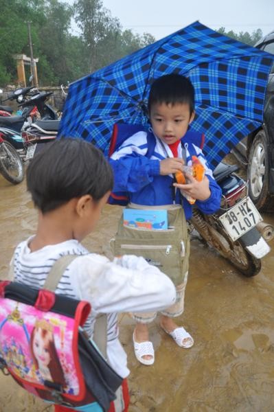 Những trường học được khôi phục tạm thời để tạo điều kiện cho các em nhỏ được tiếp tục đi học, nhưng lại rất thiếu thốn về điều kiện phục vụ cho giảng dạy. Mưa vẫn trắng xóa cả đất trời, xối xả phủ lên cả miền Trung những khó khăn và vất vả.