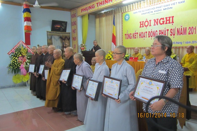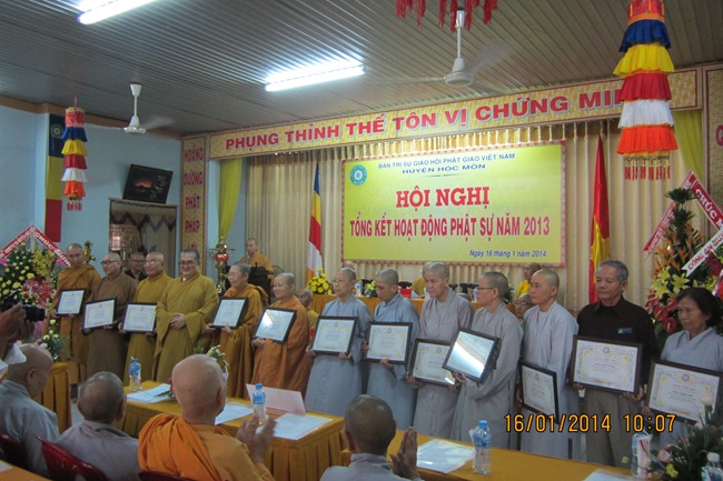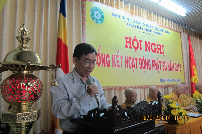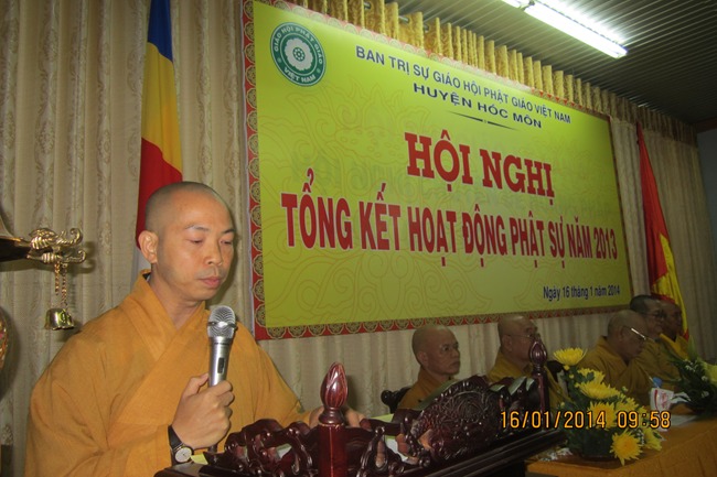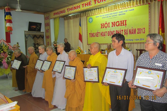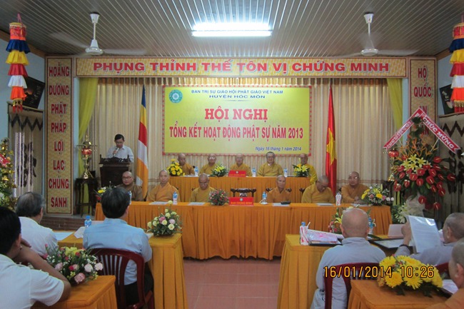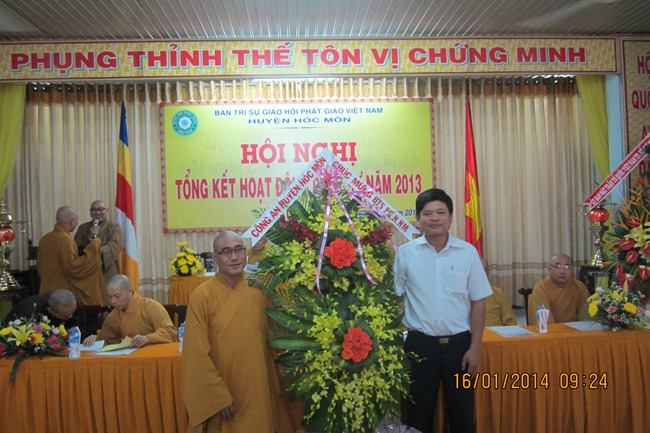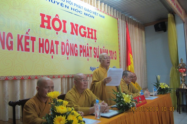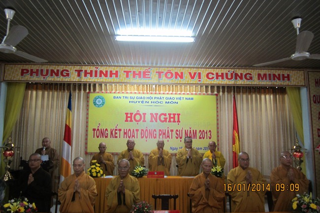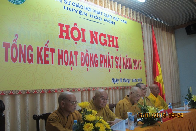 Theo đó, Với tinh thần “Đoàn kết Hòa hợp, Trưởng dưỡng Đạo tâm, Trang nghiêm Giáo hội”, dưới sự chỉ đạo của Ban Tri sự GHPGVN Tp.Hồ Chí Minh, đồng thời được sự quan tâm giúp đỡ tận tình của các cấp chính quyền cùng các Ban ngành đoàn thể huyện Hóc Môn, Ban Trị sự và Tăng Ni Phật tử huyện Hóc Môn đã nỗ lực đem hết sức mình thực hiện và hoàn thành tốt công tác Phật sự của năm 2013.