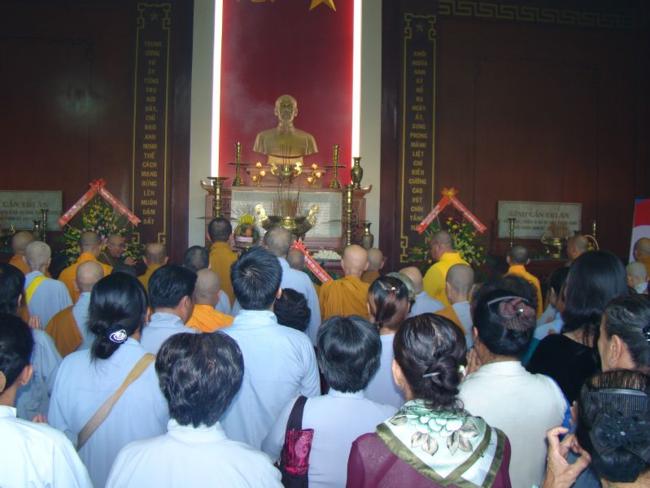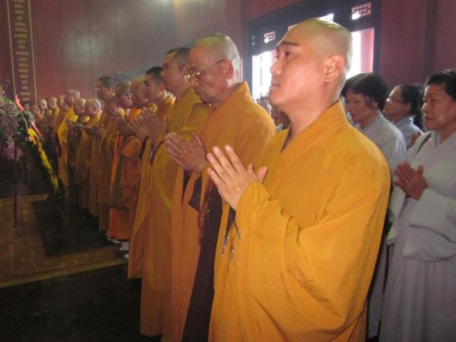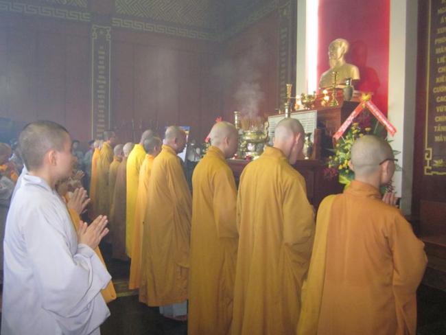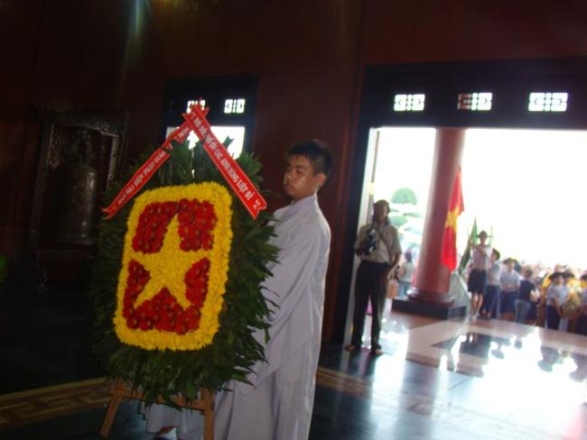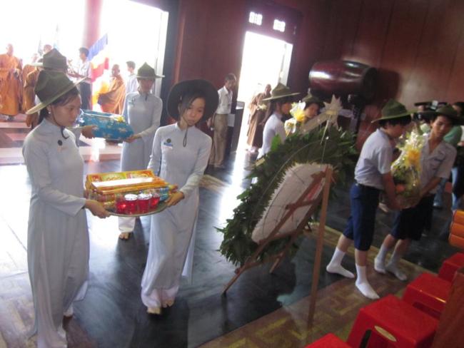 Phút mặc niệm tưởng nhớ công ơn những anh hùng đã hy sinh xương máu vì thế hệ mai sau thật hùng tráng đã nhóm lân tinh thần biết ơn và đền ơn trong lòng mỗi người con Phật, đặc biệt là các bạn thanh thiếu niên đến dự lễ tượng niệm.