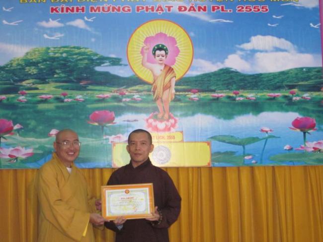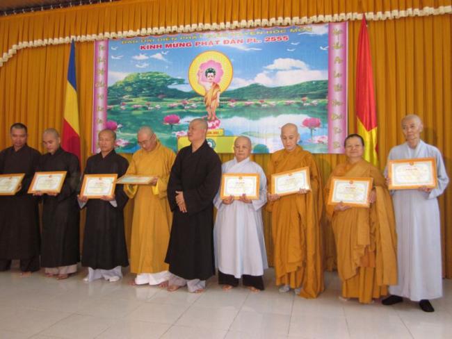 Dịp này, Ban điều hành cũng tặng bằng truyên dương công đức cho các thành viên đã nhiệt tình tham gia đóng góp cho trương trình trong năm qua, tặng bằng cho các đơn vị chùa và gia đình Phật tử xuất sắc trong công tác thiết trí lễ đài Phật đản.