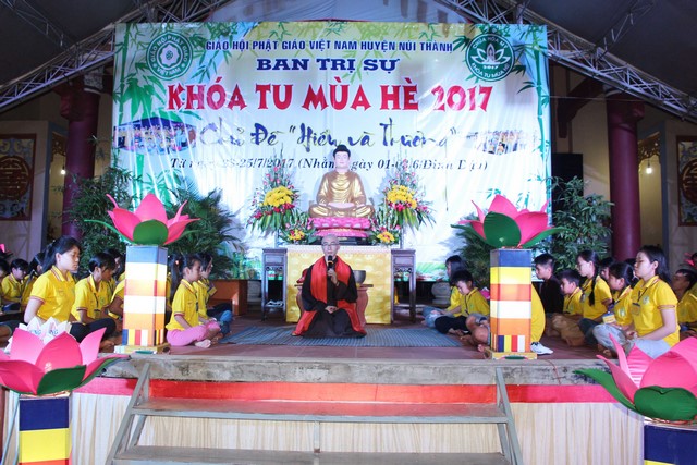 Phát biểu khai mạc ĐĐ.Thích Chánh Niệm, Phó BTS – Trưởng ban Hoằng Pháp PG huyện nhấn mạnh, ngoài việc cho các em vui chơi sinh hoạt, trau dồi những kỹ năng sống tự lập, các em còn được trực tiếp nghe giảng về giáo lý đức Phật. BTC chú trọng vấn đề đạo đức con người, nên chủ đề được đặt ra cho khóa tu “hiểu và thương” đề cao lòng hiếu thảo, tình yêu thương.