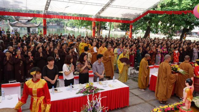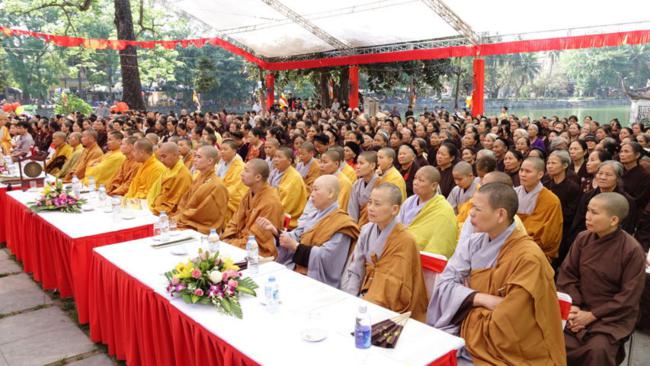 Mở đầu buổi lễ, Thượng tọa Thích Thanh Chính – Ủy viên thường trực HĐTS TW GHPGVN, Phó Trưởng Ban thường trực BTS GHPGVN TP. Hà Nội đã tuyên đọc thông điệp của Đức Pháp Chủ GHPGVN.