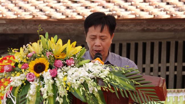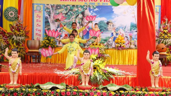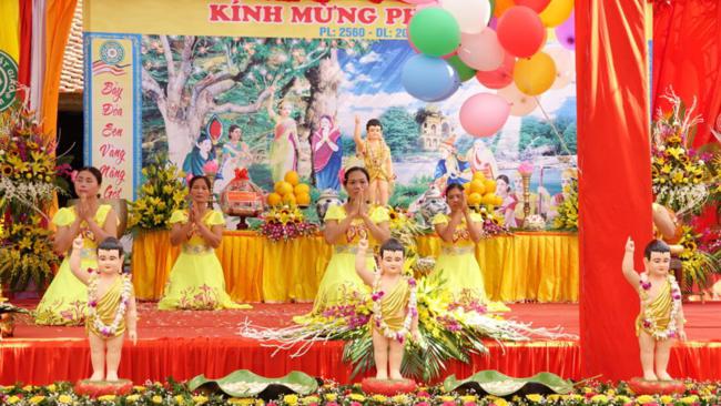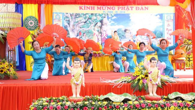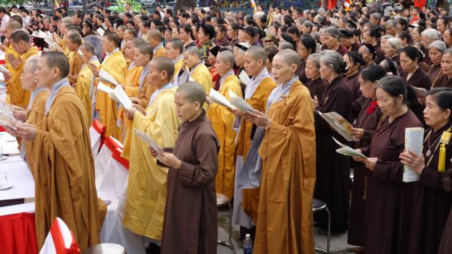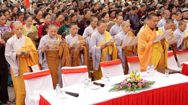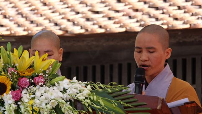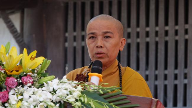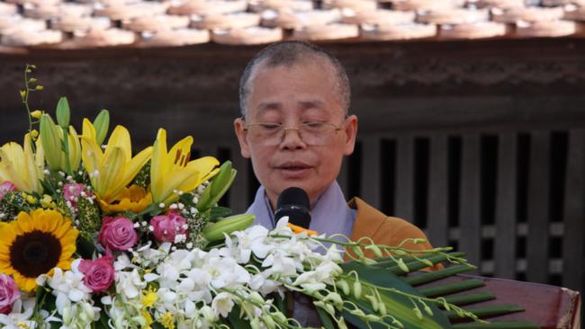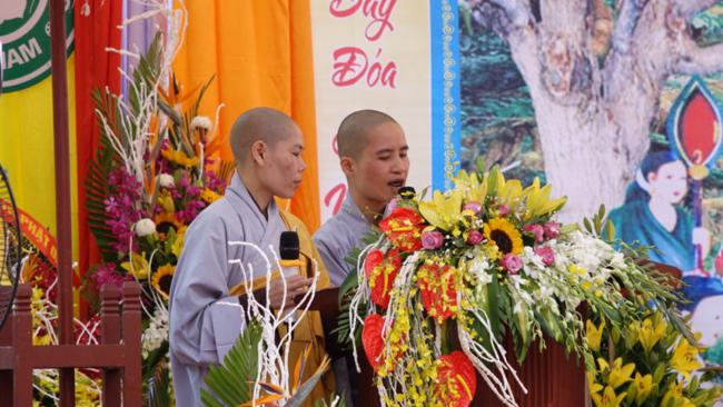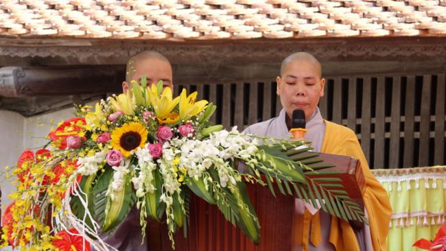 Ni Sư Thích Đàm Lợi – Ban đặc trách Ni chúng huyện Quốc Oai, phó BTS GHPGVN huyện Quốc Oai lên đọc diễn văn Phật đản PL. 2560 – DL. 2016 của HT Chủ tịch HĐTS GHPGVN.