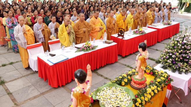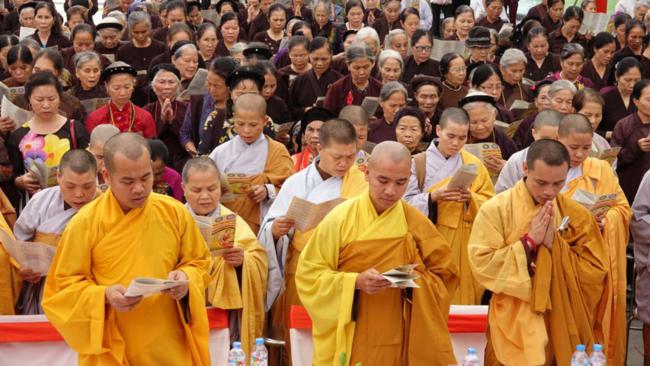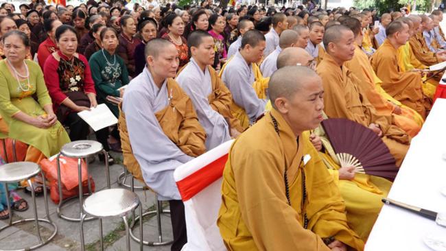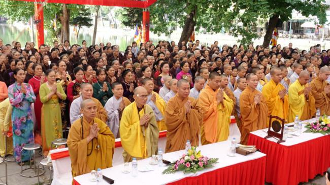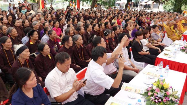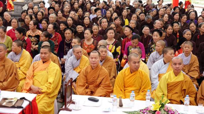 Chứng minh buổi lễ có: Thượng tọa Thích Thanh Chính – Ủy viên thường trực HĐTS TW GHPGVN, Phó Trưởng Ban thường trực BTS GHPGVN TP. Hà Nội; Thượng tọa Thích Minh Đạo – trụ trì chùa Cao; Thượng tọa Thích Minh Hiển – trụ trì chùa Thầy, chùa Cúc; Đại đức Thích Đạo Vĩnh – Ủy viên BTS GHPGVN Thành phố Hà Nội, Trưởng BTS GHPGVN huyện Quốc Oai cùng toàn thể Tăng ni 54 chùa trong huyện.