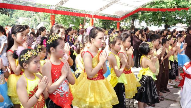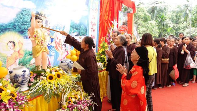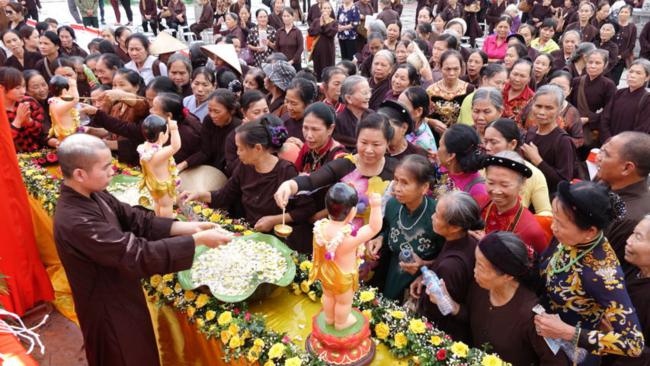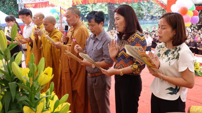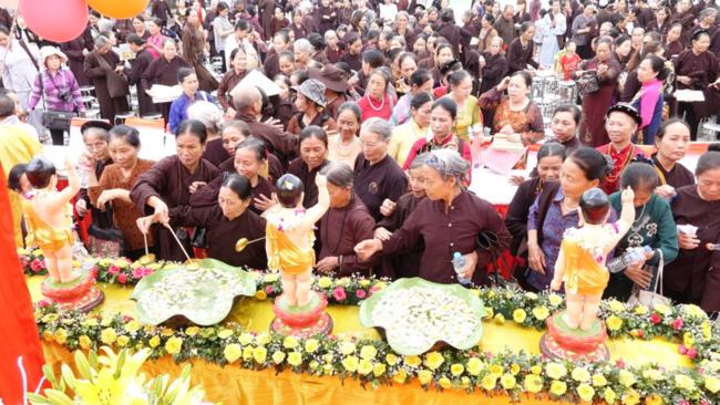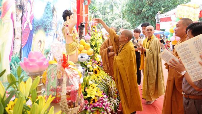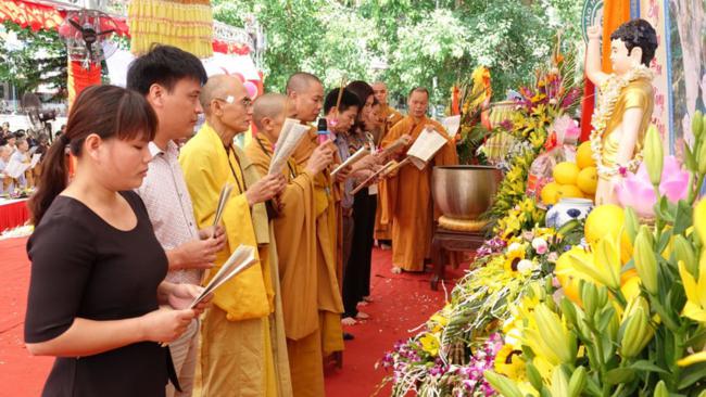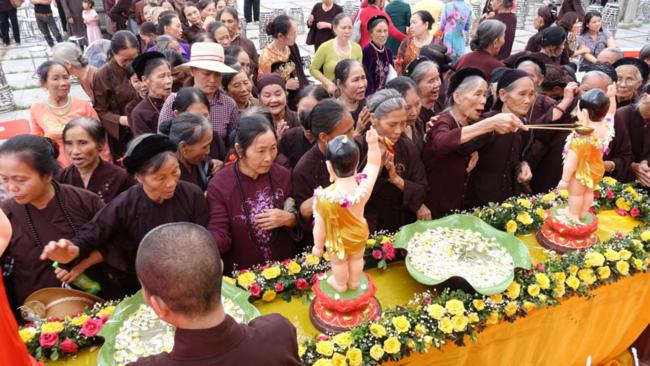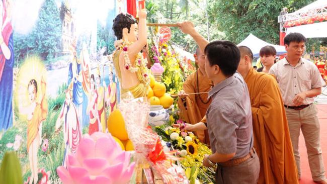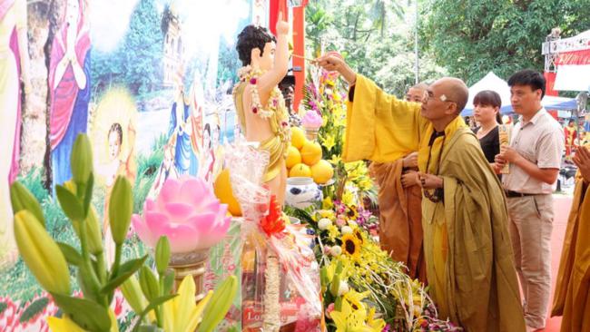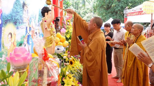 Trước khi kết thúc buổi lễ, Chư tôn đức Tăng Ni, các cấp chính quyền của huyện Quốc Oai, xã Sài Sơn và đông đảo các Phật tử đã cử hành nghi lễ niêm hương, bạch Phật, và nghi lễ tắm Phật theo nghi thức truyền thống của Phật giáo trong không khí hoan hỷ, ấm tình đạo vị nhân ngày đức Phật ra đời.