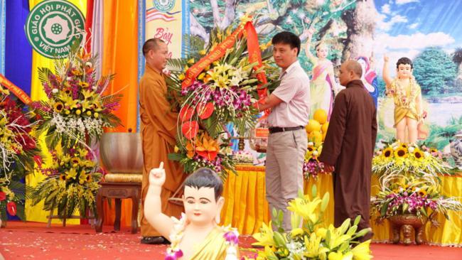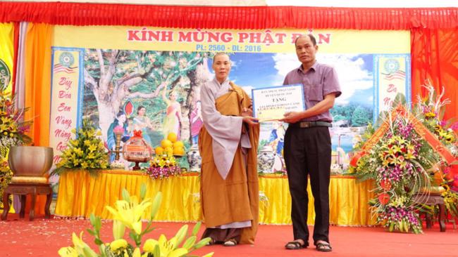 Nhân dịp này, Chư tôn đức Tăng trong chốn trụ xứ đã vinh dự đón nhận lẵng hoa tươi thắm do ông Nguyễn Văn Nghĩa – phó CT UBND xã Sài Sơn và những phần quà, chúc mừng chư tôn đức Tăng Ni của bà con Phật tử nhân mùa Phật đản PL. 2560 – DL.2016.