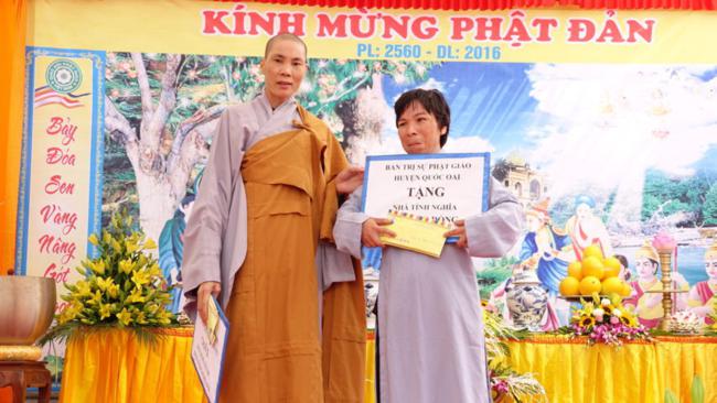 Nhân dịp này, Chư tôn đức Tăng chùa Thầy và các Phật tử đã trao tặng 10 triệu đồng cho quỹ vì người nghèo thôn Thụy Khuê. Tặng nhà tình nghĩa hơn 50 triệu đồng cho người nghèo thôn Thụy Khuê.