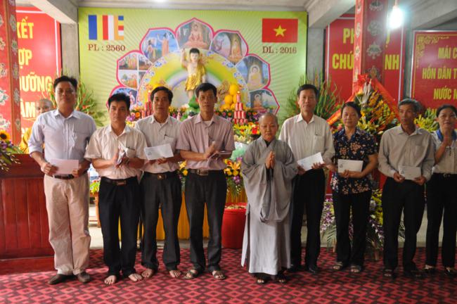 Nhân dịp này, Ban tổ chức cũng tặng những phần quà vô cùng ý nghĩa cho các hộ nghèo trong huyện theo tinh thần Từ bi cứu khổ của Đạo Phật.