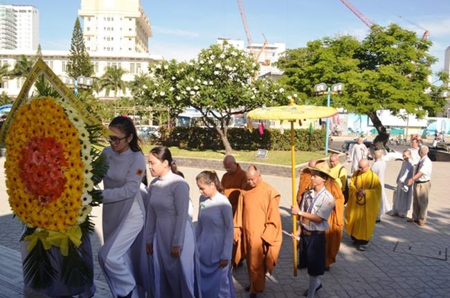 Đoàn có Chư Tôn Đức Tăng Ni BTS GHPGVN tỉnh Khánh Hòa, do Hòa thượng Thích Quảng Thiện, UV HĐTS. Phó Trưởng BTS GHPGVN tỉnh Trưởng đoàn. Trước tượng Đài uy nghi hùng tráng, chư tôn đức đã niêm hương dâng lên Bồ Tát Quảng Đức, vị Bồ Tát đã quên mình vì sự trường tồn của Tổ quốc, Dân tộc.