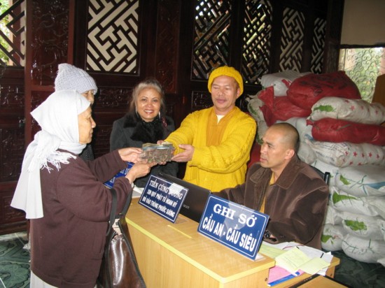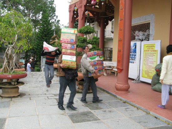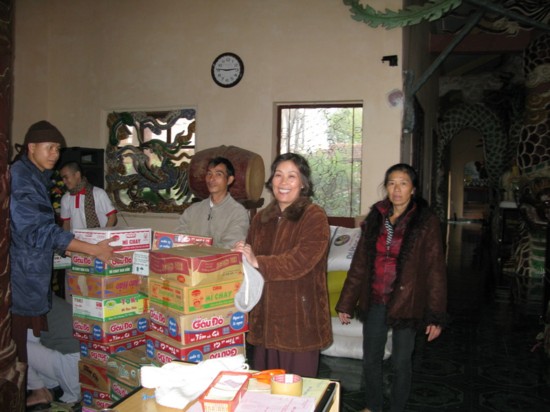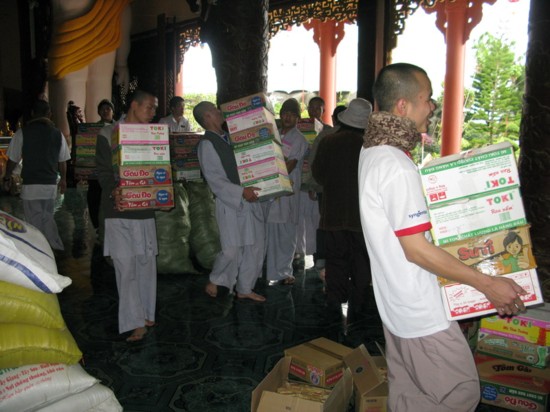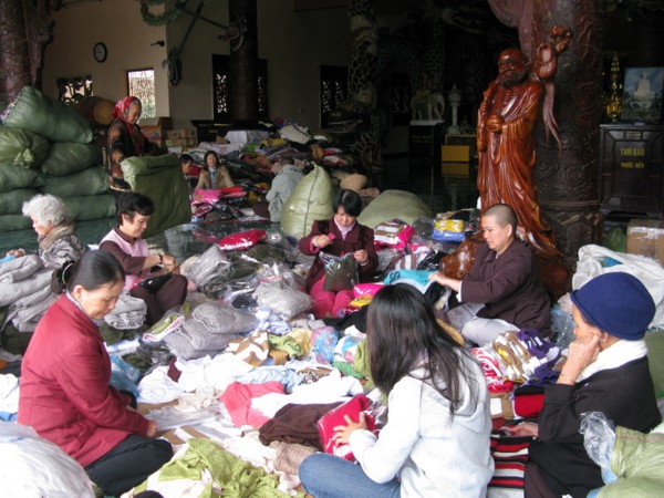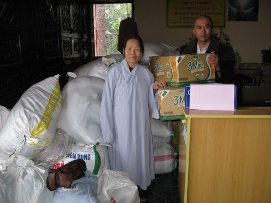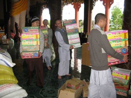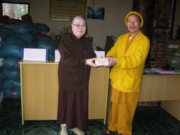 Trong đó Ban Trị Sự đóng góp 30 triệu đồng, Ni Bộ Lâm Đồng 5 triệu đồng, Ban Đại diện Phật giáo huyện Di Linh 33.769.000 Đồng, Ban Đại diện Phật giáo TP Bảo Lộc 10 triệu và Ban Đại diện Phật giáo TP Đà Lạt 703.231.000 đồng, bao gồm: 532.904.000 Đồng tiền mặt, 7.010 kg gạo, 364 thùng mì ăn liền, 1.500 áo len mới, 1.000 áo thun mới, 1.500 áo gió mới, 1.600 tập vở học sinh, 70 lít dầu ăn, 10.000 bộ quần áo cũ các loại (danh sách đóng góp đính kèm).