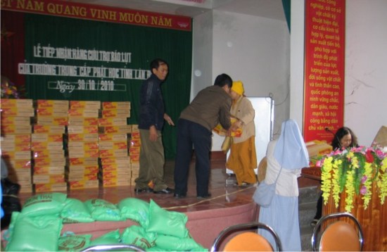 Trước đó, trường Trung cấp Phật học Lâm Đồng cũng đã đến thăm và trao tặng 600 phần quà trị giá 300.000 đồng, một phần cho bà con tại xã Quãng Hải, Quảng Trung, Quảng Thủy thuộc huyện Quảng Trạch tỉnh Quảng Bình, xã Nghi Lộc, huyện Lộc Hải, tỉnh Hà Tỉnh.