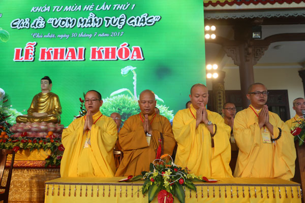 Buổi lễ khai khóa đã diễn ra trang nghiêm dưới sự chứng minh và tham dự của HT. Thích Thiện Toàn – UV HĐTS, Phó BTS kiêm Trưởng ban HDPT GHPGVN Tp Đà Nẵng; TT. Thích Từ Nghiêm – UV HĐTS, Phó BTS kiêm Trưởng ban Hoằng pháp GHPGVN Tp Đà Nẵng; ĐĐ. Thích Thanh Nguyên – UVTT BTS GHPGVN Tp Đà Nẵng, Trưởng BTS GHPGVN quận Liên Chiểu, Trưởng BTC khóa tu cùng Chư Tôn đức Tăng Ni BTS GHPGVN quận Liên Chiểu; Chư Đại đức Tăng Ni trên địa bàn quận.