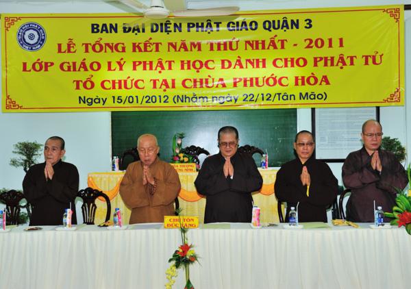 Quang lâm chứng minh có HT. Thích Tịnh Hạnh – ủy viên HĐTS, Phó BTS PG TP.HCM, HT. Thích Minh Chơn – Phó Ban Hoằng pháp TW, Trưởng BHP thành hội, HT. Thích Minh Hiền – Chánh Đại diện Phật giáo Q.3. TT. Thích Thanh Vân – Phó thường trực BĐD, TT. Thích Tắc Huê – giáo thọ sư lớp sơ cấp Phật học, ĐĐ.Thích Thiện Châu – Chánh Thư ký Ban ĐDPG quận 3; Ni sư Thích Nữ Viên Hạnh, Trụ trì chùa Phước Hòa; Ni sư Thích Nữ Viên Nhã, Phó Thư ký Phân ban đặc trách Ni giới THPG TP.HCM cùng quý chư tôn đức Tăng Ni trong BĐDPG quận 3, chư tôn đức trụ trì các tự viện trên địa bàn quận và gần 200 Phật tử học viên lớp học Phật pháp đồng tham dự.