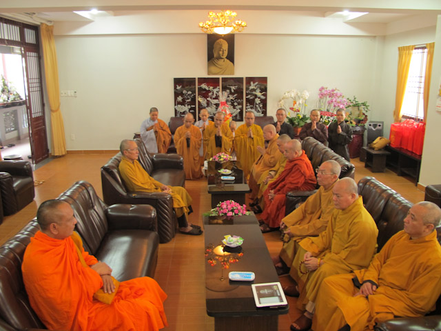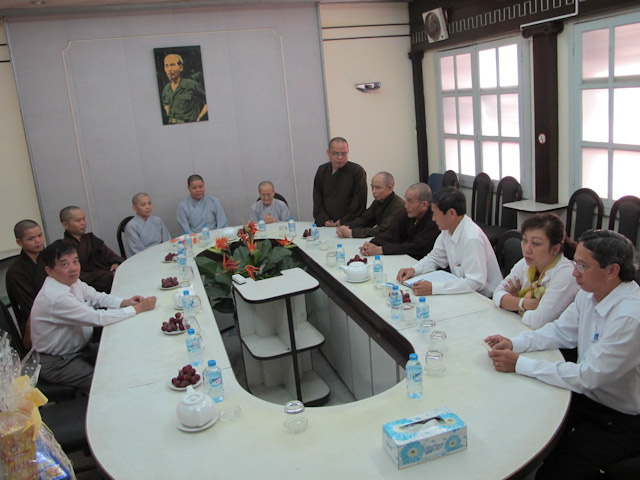 Tiếp theo, Đoàn đã đến Văn phòng Thường trực Trung ương GHPGVN Thiền Viện Quảng Đức (Q.3). Tiếp đoàn có, HT. Thích Thiện Nhơn – Chủ tịch HĐTS GHPGVN, HT. Thích Thiện Pháp – Phó Chủ tịch Thường trực HĐTS GHPGVN, HT. Thích Thiện Tâm – Phó Chủ tịch HĐTS GHPGVN, cùng chư Tôn giáo Phẩm lãnh đạo Trung ương GHPGVN.