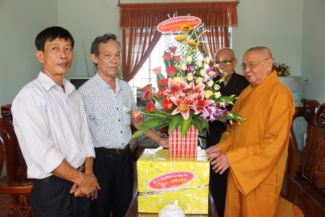 HT.Thích Thiện Duyên, Phó Chủ tịch HĐTS, Trưởng BTS GHPGVN tỉnh Quảng Nam đã tặng lẵng hoa tươi thắm và gởi lời chúc tốt đẹp tới tập thể lãnh đạo và các vị chuyên viên của Ban. Đồng thời Hòa thượng bày tỏ sự cảm ơn sâu sắc Ban Tôn giáo – Sở Nội vụ đã luôn tạo điều kiện, giúp đỡ cho Tăng Ni Phật tử của tỉnh nhà trong mọi hoạt động Phật sự.