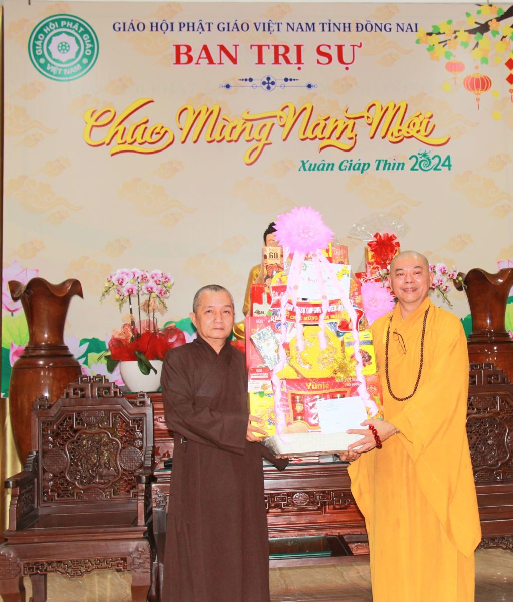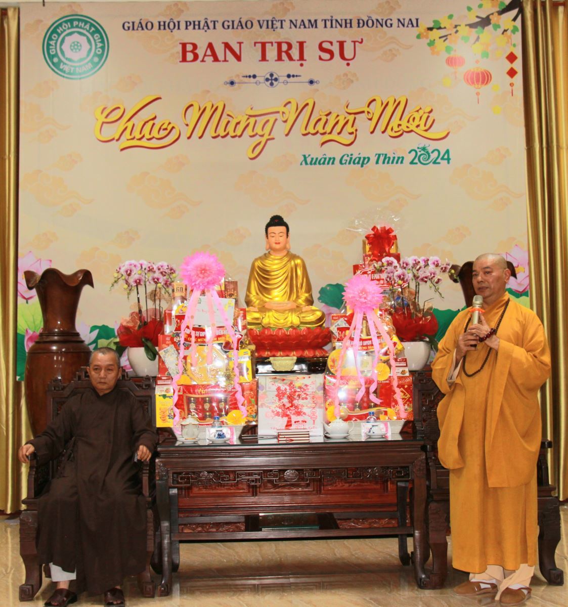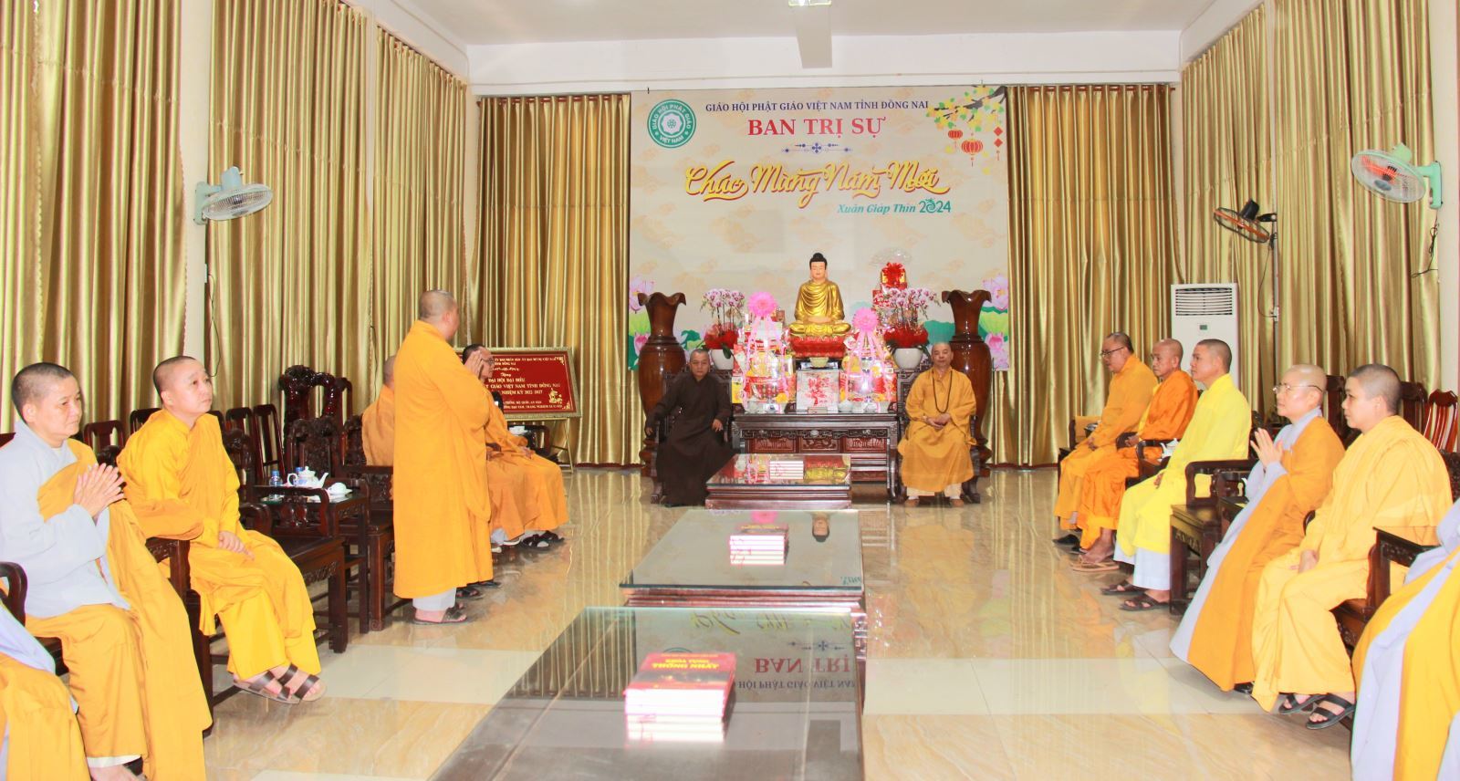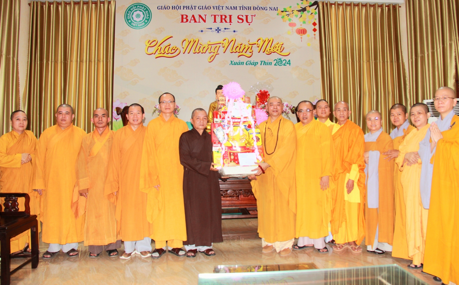 Trong không khí hoan hỷ chào đón Tết cổ truyền – xuân Giáp Thìn (2024), sáng ngày 22/ 01/ 2024 (nhằm ngày 12/ chạp/ Quý Mão) đoàn Thường trực Ban Trị sự Giáo hội Phật giáo Việt Nam thành phố Biên Hòa, do Thượng tọa Thích Thiện Thọ, Ủy viên Ban Trị sự tỉnh Đồng Nai, Phó Trưởng ban Thường trực Ban Trị sự GHPGVN TP. Biên Hòa làm trưởng đoàn, đã đến vấn an sức khỏe và chúc tết chư tôn đức giáo phẩm Ban Trị sự GHPGVN tỉnh Đồng Nai và chứng minh Ban Trị sự GHPGVN thành phố Biên Hòa.