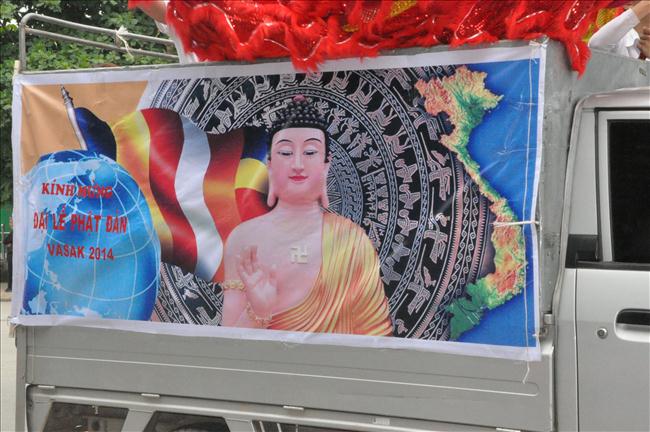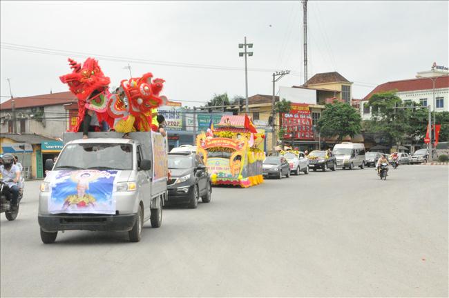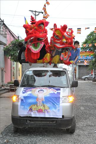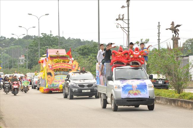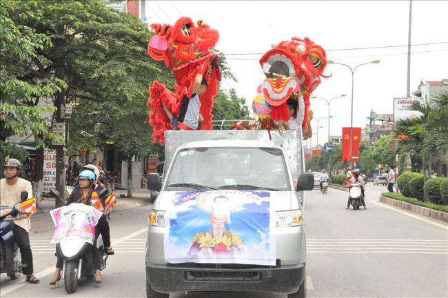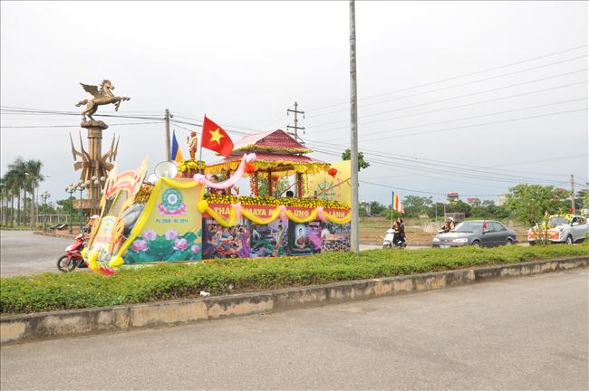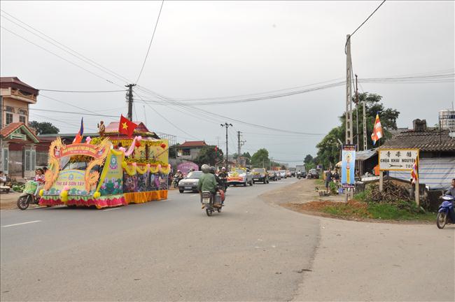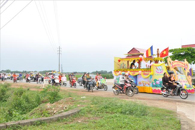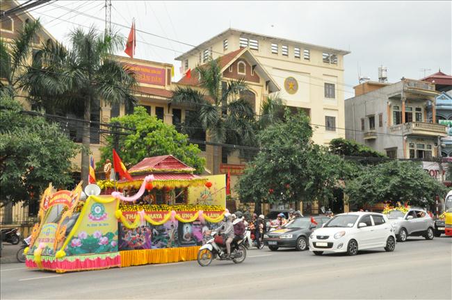 Đoàn rước với sự tưng bừng của mình đã làm không khí Phật Đản như tràn về trên hầu hết mọi con phố, tuyến đường của Thị xã.