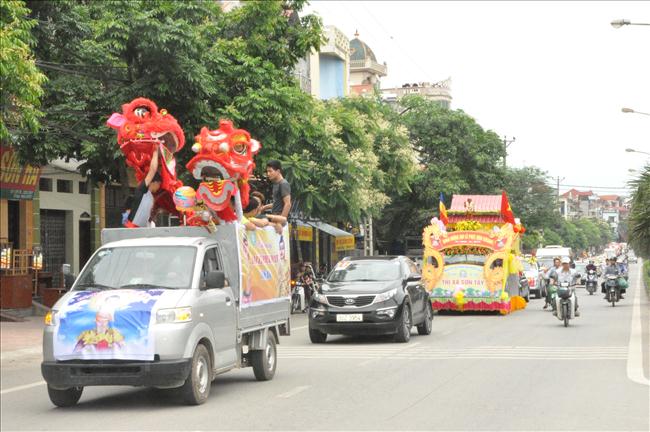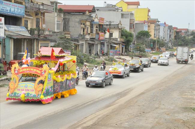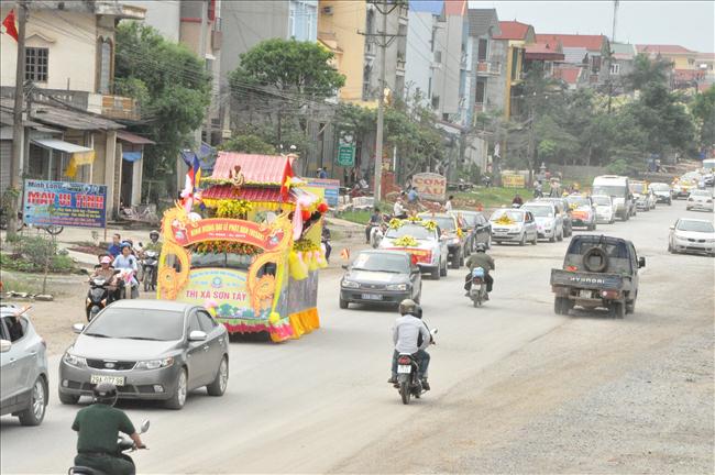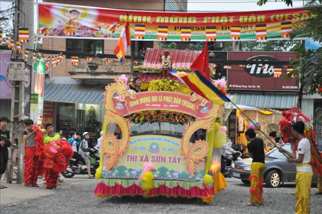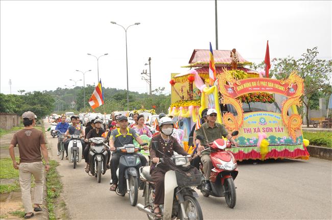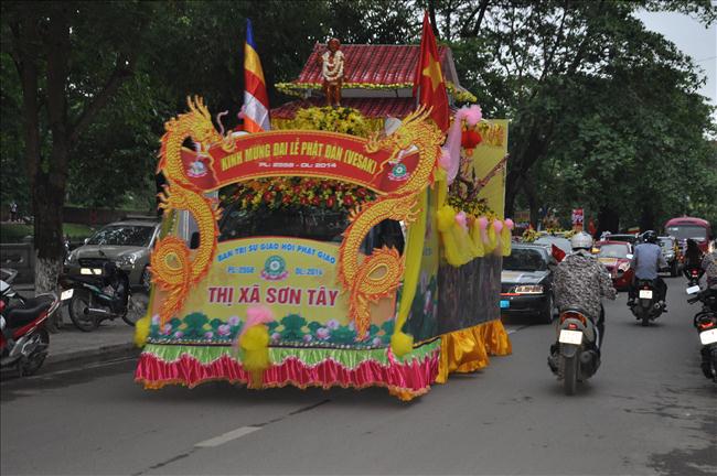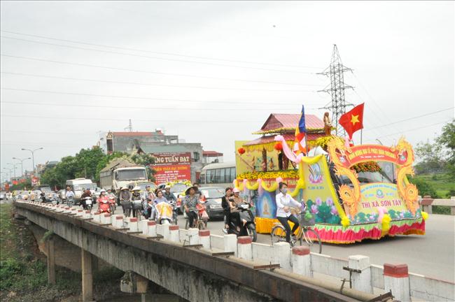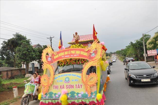 Hưởng ứng tuần lễ kỷ niệm ngày Đức Phật Đản sinh, Chư tôn đức trong BTS cùng Phật tử và chính quyền Thị xã Sơn Tây đã long trọng tổ chức lễ rước Phật theo các khu vực hành chính trong Huyện. Bắt đầu từ chùa Nghĩa Phủ – Phường Trung Hưng – Thị xã Sơn Tây và đoàn rước đã đi hết các tuyến phố chính cũng như các tuyến phố, đường bao quanh thị xã ( đường Quang Trung, Sơn Đông, phố Trương Vương, phố Chùa Thông,…) cuối cùng quay trở về địa điểm xuất phát là chùa Nghĩa Phủ.